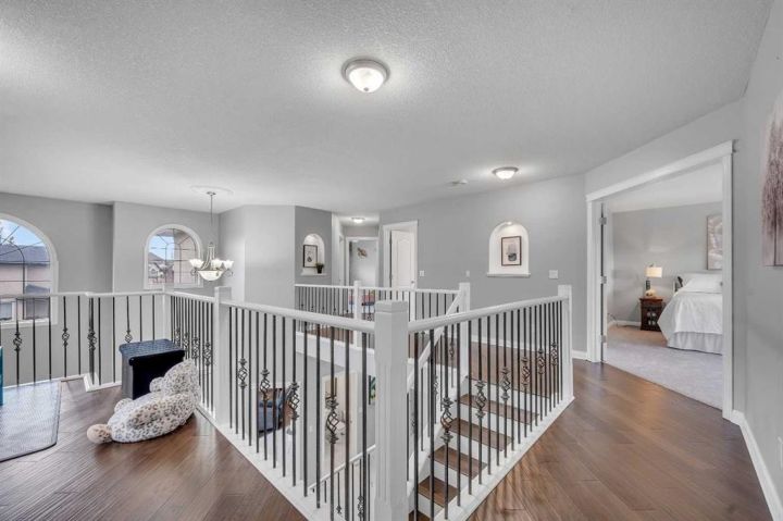 **OPEN HOUSE - NOVEMBER 16, 2025 12:00 P.M. - 3:00 P.M.**. Welcome to this beautifully renovated home backing onto the Golf Course! Step inside this stunning 7-bedroom, 5-bathroom residence perfectly positioned along the 7th hole of the Ridge Course at Country Hills Golf Course, offering sweeping views and exceptional living space for the entire family. From the moment you enter, you’re welcomed by a spacious foyer featuring beautiful ceramic tile and gleaming engineered hardwood flooring that flows throughout the main level. The heart of the home is the chef’s dream kitchen, showcasing sleek quartz countertops, high-end cabinetry, and a seamless flow into the family room with a cozy gas fireplace. Step out onto the balcony to take in the tranquil fairway backdrop, where you can sip your morning coffee, soak in the sunshine, and enjoy the beautiful views that can be seen from every level of the home. The main floor also features a bright dining area, a separate living room, a private office ideal for working from home, main floor laundry, and a convenient four-piece bathroom. Upstairs, you’ll find four generous bedrooms, including a primary bedroom with a walk-in closet and a luxurious four-piece ensuite with a separate shower and jetted tub. The upper level also features brand-new carpet and a bright bonus room overlooking the main floor. The fully finished walkout basement offers an illegal suite with three additional bedrooms, two bathrooms, a recreation room, separate laundry, and a utility room, providing excellent potential for extended family or rental income. Step outside and enjoy a beautiful stamped concrete patio complete with a welcoming pergola and comfortable seating area, perfect for outdoor gatherings. The raised garden beds add a touch of charm and are ideal for growing your own plants and flowers throughout spring and summer. Additional highlights include air conditioning, multiple new windows, two furnaces, two hot water tanks, and a new roof (2025), ensuring comfort, efficiency, and peace of mind. Ideally located close to schools, scenic biking and walking paths, shopping, dining, and convenient transit options, this home truly has it all. Experience the best of Northwest Calgary living with golf course tranquility, sun-filled mornings, and breathtaking views from every level, right in your backyard!
