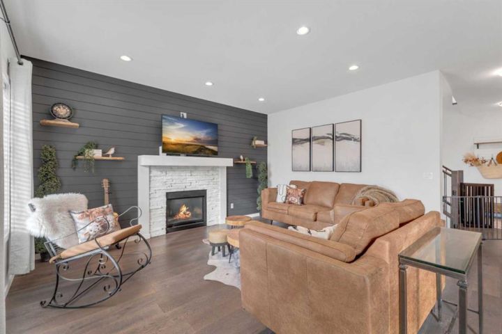 A Divine Find! This stunning and expansive 2-storey home boasts a premium location backing onto beautiful treed trails that lead directly to the Gaetz Lakes and Kerrywood Nature Centre. Enjoy the serenity of nature right out your back door while remaining conveniently close to schools, shopping, golf courses, and all major amenities. Step inside to an inviting open-concept main floor featuring engineered hardwood throughout the entire home — that’s right, no carpet in this house! The gorgeous kitchen offers timeless white cabinetry with updated hardware and crown molding to the ceiling, quartz countertops, a full tile backsplash, and a custom-covered hood fan over the gas stove. A convenient walkthrough pantry leads to the mudroom off the heated attached garage. The bright dining area and living room are beautifully connected, highlighted by a gas fireplace with a stylish feature wall — all overlooking the large, fenced yard. A convenient laundry room, 2-piece bath, and a generous front entry with an open staircase complete the main floor, creating a grand yet comfortable atmosphere. Upstairs you’ll find three well-proportioned bedrooms, a sizable bonus room, and two full bathrooms. The primary suite offers peaceful treed views, a walk-in closet, and a 5-piece ensuite. The unfinished basement awaits your ideas, with ample space for a future bedroom, family room, and bathroom (roughed-in). Additional features include several brand-new light fixtures, in-floor heat rough-in, central A/C, Nest thermostat, a gas line on the deck for your BBQ, and all appliances (fridge, stove, dishwasher, microwave, washer, and dryer) are included. This is truly a home that checks all the boxes — comfort, style, location, and long-term value!