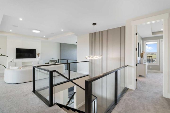 Experience elevated living in Sunset Ridge with this beautifully designed Green Cedar Homes build — a 5-bedroom, 5-bathroom masterpiece offering over 2,200 sq ft of refined living space plus a fully developed basement. Every detail of this home reflects modern elegance, functional design, and the exceptional craftsmanship Green Cedar is known for. Step inside to an open-concept main floor where natural light fills the space and thoughtful touches bring warmth and sophistication. The chef-inspired kitchen features sleek cabinetry, premium finishes, and a walk-through pantry that connects seamlessly to a practical mudroom, perfect for busy family life. A flex room on this level adds versatility — ideal for a home office, playroom, or quiet study. Upstairs, the bonus room provides the perfect retreat for movie nights or a cozy family lounge. The primary suite is a sanctuary of comfort, complete with a spa-like ensuite and generous walk-in closet. Two additional bedrooms, each with access to well-appointed bathrooms, ensure space and privacy for everyone. The fully developed basement expands the home’s potential with two more bedrooms, a full bath, and a large recreation area, ideal for guests or multi-generational living. Set in Sunset Ridge, one of Cochrane’s most desirable communities, you’ll enjoy scenic pathways, nearby schools, parks, and breathtaking mountain views — all within minutes of town amenities. Designed for modern families. Built for lasting impressions. Welcome home to Green Cedar in Sunset Ridge.