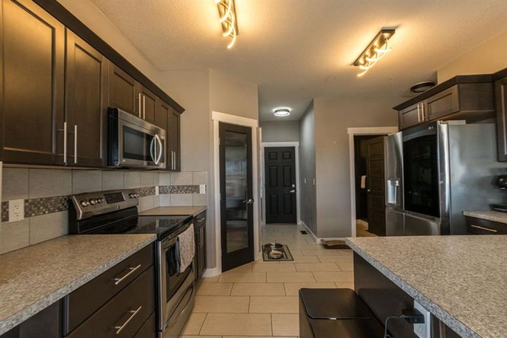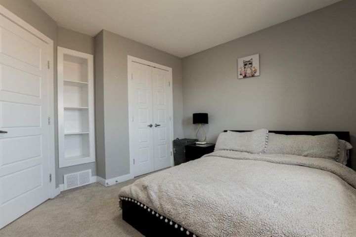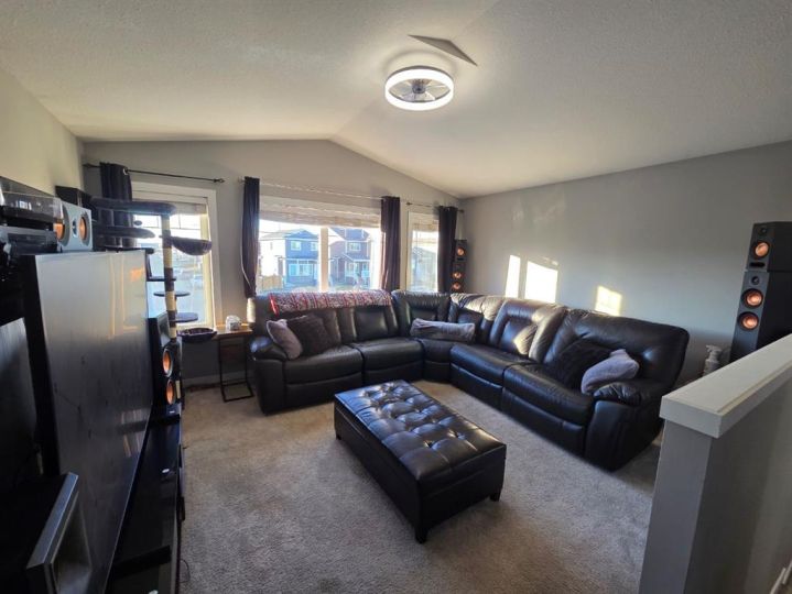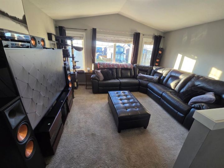 Welcome to this beautiful two storey home in the desirable Cobblestone community, offering privacy with no rear neighbours and an easement on one side. Featuring air conditioning and a double attached garage, this open-concept home is perfect for modern living. The main floor boasts a spacious living area flooded with natural sunlight & feature gas fireplace. The bright kitchen showcases stainless steel appliances, corner pantry, and plenty of cupboards and counter space including seating. The dining space provides access to the deck and backyard while a half bath adds convenience to your main floor. Upstairs, you’ll find a cozy bonus room perfect for playroom or tv room. The primary suite hosts a 4pc ensuite bath plus walk in closet while still providing space for a king size bed & furniture. Two additional bedrooms plus a full bathroom complete the upper level. The partially developed basement includes a fourth bedroom, providing extra space for family or guests. Enjoy the outdoors in the fully fenced and landscaped yard, ideal for relaxing or entertaining. Located in a great neighbourhood close to schools, shopping, and amenities, this home combines comfort, style, and convenience, it's perfect for your next move! Book your showing today!