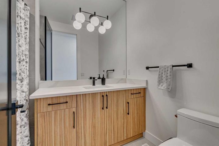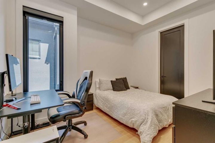 Why move to NYC when you can get the ‘feel’ right here in Killarney?!?! Modern luxury meets function in this stunning Detached Single Family 2 Storey home with over 2,600sqft of living space adorned with luxury touches throughout! Great curb appeal on a stunning street, this classic exterior has charm and grace, then the Top of the Line specs in the open concept Main make you feel relaxed and at home! Welcoming Foyer, super huge windows with black trim shed natural light throughout all day long. The Dining Room and kitchen flow seamlessly, oversized pantry is a lifesaver, allows the oversized island to be used for prep by the Chef and socializing when entertaining! With natural wide-planked Hardwood Floors throughout most of the Main and the 2nd Floor, 10 ft ceilings on the Main, 9 ft ceilings up, this home will please All! Custom kitchen cabinetry provides a modern yet industrial feel with glass doors on some cabinets, Top of the line Stainless Steel appliances, adorned with Quartz C-tops, as is the island. Such a nice mix of black, gold, tumbled brick and natural woods! Custom lighting throughout, be sure to look for the Art TV as well as the other attached TVs and built-in speakers – great for entertaining, setting the mood and just plain relaxing! The Living Room and Breakfast Nook are a perfect size, with large windows once again looking out to the private yard full width deck, complimented by a brick-faced Fireplace. The Mudroom is so smart, allowing space as the family comes in from the insulated to paint Double Garage off the rear paved lane. Turf grass is easy for cleanup for the family pup! The large deck has room to hang, Duradek finishing. Upper level offers three large Bedrooms, each with their own walk-in closets. The Primary Bedroom with coffered ceiling is luxurious, with a large walk-in closet, 6-piece Ensuite with the full spa feel: Double sinks, infloor heat, separate Soaker Tub and then oversized Steam shower with bench – very nice! Laundry up is also a good size, much needed! Lower level is fun, with wetbar and a wine cellar all ready to go! Media Room with attached TV & speaker, what a great area! Gym area with potential TV set up, 4th bedroom down is very large, again with walk-in closet! This home offers all you have been looking for, just move in!