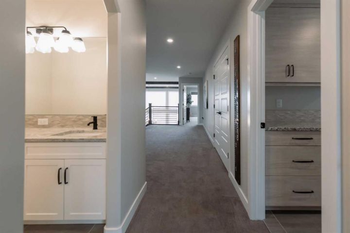 This stunning executive two-storey in the sought-after Sixmile community offers the perfect blend of luxury, comfort, and functionality, showcasing exceptional quality and thoughtful design with over 4,100 sq. ft. of beautifully finished living space. Featuring 6 bedrooms, 3.5 bathrooms, and a main floor office, this home is ideal for families seeking space! The main floor boasts 9’ ceilings, a dramatic vaulted living room with a floor-to-ceiling stone fireplace, and expansive windows that fill the home with natural light! The kitchen impresses with quartz countertops, premium stainless steel appliances including an oversized fridge/freezer combo, a large island, and a walk-through butler's pantry that connects seamlessly to the mudroom with built-in storage. Upstairs, you’ll find a bright bonus room, a full laundry room, and three spacious bedrooms, including a luxurious primary suite with a spa-inspired ensuite featuring double sinks, a fully tiled shower with dual heads, a soaker tub, and a walk-in closet! The fully developed basement continues the high-end finishes with 9’ ceilings, brand new carpet, three additional bedrooms, a family room, a second laundry space, and a full bath—perfect for guests or growing families. Outside, the east-facing backyard is a private retreat backing onto an open field, featuring a covered deck with storage space underneath and Wi-Fi–controlled underground sprinklers! Additional highlights include a heated double attached garage with mezzanine storage, central A/C, a dual-zoned furnace, and a tankless hot water system. Every detail of this home has been crafted for modern living—offering elegance, practicality, and unparalleled comfort in one of Lethbridge’s most desirable neighbourhoods!