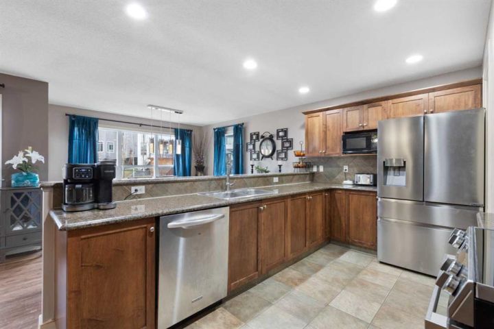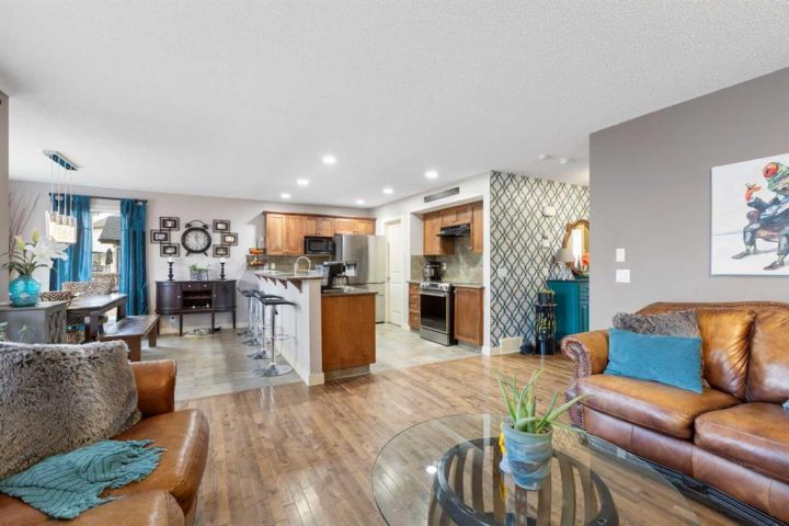 Discover this charming 5-bedroom family home, a perfect blend of character, style, and warmth. Not your typical white-walled house, it exudes personality with moody tones and unique details that make it stand out. Boasting almost 2,200 sqft above grade, this spacious residence offers plenty of room for the whole family. The beautifully appointed kitchen seamlessly connects to the dining and living areas, creating an ideal space for gatherings. Featuring 3.5 bathrooms, there's comfort and convenience throughout. The fantastic backyard backs onto a serene green space, providing a private outdoor retreat. Located in a family-friendly neighbourhood, this home is within walking distance of a school, a strip mall, and shopping, and offers easy access to the main road in Okotoks. Original owners have cared for this special property—schedule your viewing today!