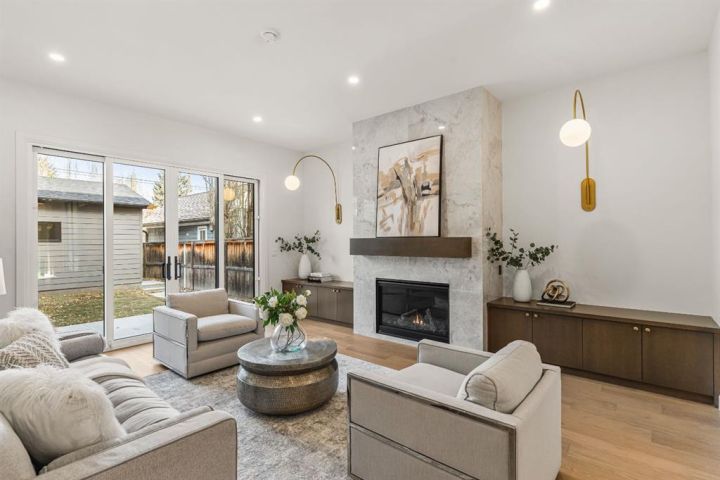 Welcome to The Vega — a beautifully crafted home by Cedar Rock Homes, set on one of Briar Hill’s most desirable streets. This four-bedroom, 3.5-bath residence offers over 3,200 sq ft of developed living space on an oversized 130-foot-deep lot. Architectural elegance meets thoughtful functionality and elevated finishes to create a space that feels both sophisticated and comfortable. Step inside to soaring 10-foot ceilings, wide-plank white oak floors, and natural light that fills every corner. The open-concept main floor flows seamlessly from the chef’s kitchen — complete with custom millwork and a full Miele appliance package — to the inviting living area anchored by a sleek gas fireplace and full dining space perfect for family gatherings and entertaining. With vaulted 10-foot ceilings on the upper floor, the primary suite feels like a private retreat, featuring heated floors, a curbless steam shower, freestanding tub, and dual walk-in closets. Two additional bedrooms — each with walk-in closets — share a spacious five-piece bath, while a pocket office provides a quiet spot to work or study. The lower level offers room to live and play, with a large family area, wet bar, home gym, fourth bedroom, full bathroom, and roughed in infloor heating — ideal for guests or extended family. Outside, enjoy quiet evenings in your private yard or coffee on the front courtyard patio. With a double detached fully insulated, drywalled and painted garage, smart-home wiring, and high-efficiency mechanicals, every detail has been designed for lasting comfort and performance. Nestled in Briar Hill, one of Calgary’s premier inner-city communities, you’re just minutes from Kensington, Foothills Hospital, the University of Calgary, and some of the city’s best parks and schools. The Vega — modern living, perfectly grounded in a classic Calgary neighbourhood. Book your private showing today!