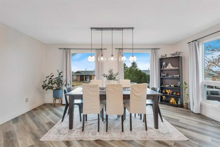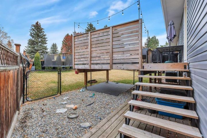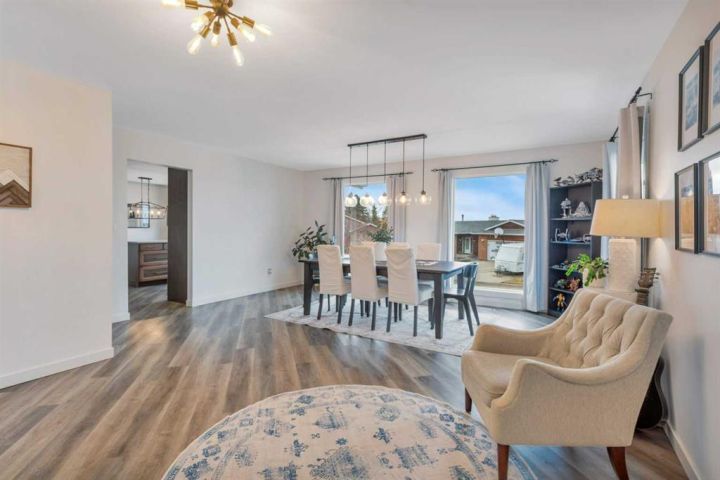 MLS® Listing Description Are you looking for an updated family home in a desirable neighbourhood with five bedrooms and incredible views? Welcome to 7 Westview Drive — this beautifully renovated bi-level offers nearly 3,600 sq. ft. of TOTAL living space designed for comfort, entertaining, and everyday living. The open-concept main floor features warm rustic vinyl plank flooring, crisp white paint and trim, and a spacious living room anchored by a stunning floor-to-ceiling slate wall with a gas fireplace (2022). The fully renovated kitchen (2021) impresses with custom maple cabinetry, quartz and granite countertops, stainless steel appliances, and bold modern lighting. Large windows fill the space with natural light — perfect for gathering and entertaining. Just off the kitchen, enjoy a bright additional living area with floor-to-ceiling windows and a wood-burning fireplace (WETT certified). This flexible room is ideal as another entertaining area, formal dining area, music room, with access to the deck and backyard. The primary bedroom includes sliding doors to the deck, a spacious PAX wardrobe, and a luxury ensuite with dual sinks, tile flooring, and a spa shower with multiple jets. Two additional bedrooms and a renovated 4-piece bath complete the main level. Downstairs, the fully finished basement offers a theatre room with a soundproof wall (cozy couch included), two more large bedrooms, an updated 3-piece bath, dedicated laundry room with new washer and dryer, and a gym area with custom built-in lockers and garage access. The heated garage includes a workbench and room for vehicles. Outside, enjoy a large deck, newer shed, lush lawn, and a beautiful new fence — ready for family fun and entertaining. Additional Features: Central Air Conditioning (2022), Wide lot with RV/off-street parking, New playground across the street, Direct access to Lacombe’s trail system, Fantastic curb appeal and great neighbours 7 Westview Drive combines space, style, and location — the perfect place to call home!