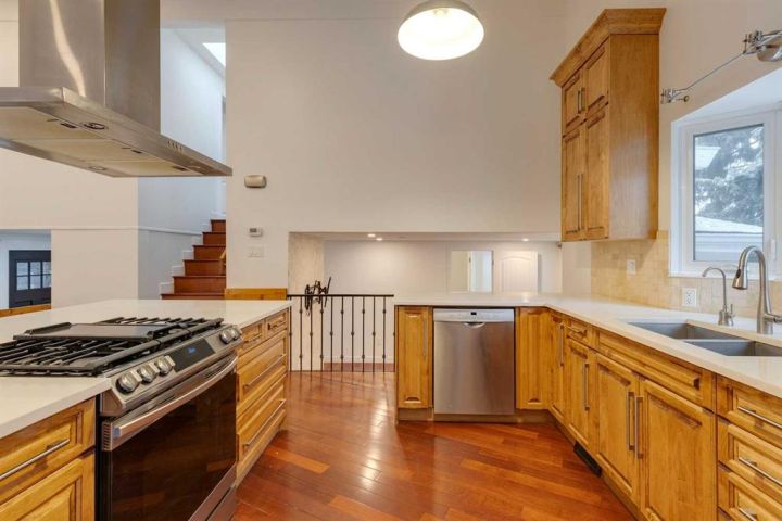 Welcome to this stunning detached home nestled in the family-friendly neighborhood of Charleswood, where mature trees and excellent amenities create a welcoming atmosphere. Boasting over 2,400 sqft of developed living space, this residence sits on an extra-large lot with a perfect slope for future walkout development, making it an ideal investment opportunity. As you enter, you're greeted by a spacious foyer and beautiful stairs leading to the main level. The main floor features HARWOOD FLOORING throughout, creating a warm and inviting ambiance. The bright living area showcases a VAULTED CEILING, a large kitchen with a kitchen island, and NEWER STAINLESS STEEL APPLIANCES, complemented by NEW CABINETS and QUARTZ COUNTERTOPS. The living room is enhanced by a NEWLY INSTALLED GAS FIREPLACE surrounded by a stunning stone backsplash, while the large dining area opens up to a generous deck, perfect for outdoor entertaining. Also on the main level, you'll find a cozy family room with access to the mudroom, a large office that can double as a game room for kids, and a 2-PIECE UPGRADED POWDER ROOM. The convenience of laundry on the main floor adds to the home's functionality. Upstairs, there are three good-sized bedrooms, including a primary suite with an UPGRADED 3-PIECE BATHROOM, alongside another upgraded bathroom. The basement offers a large recreation room, an additional bedroom, and yet another 3-PIECE UPGRADED BATHROOM. The beautifully landscaped backyard features a large deck, paved multi-level patios, and a NEWLY BUILT DOUBLE GARAGE with a spacious storage room, perfect for a workshop or extra storage. Additional highlights include a HIGH-EFFICIENCY FURNACE, a TANKLESS HOT WATER TANK, NEW WINDOWS, an upgraded ELECTRICAL PANEL, NEW AC, a newly installed IRRIGATION SYSTEM, and a NEW SKYLIGHT. The home also boasts a NEWER ROOF, vinyl siding, and stone veneer for an attractive exterior. With easy access to public transit, shops, and excellent schools, this home not only offers modern comforts and stylish upgrades but also the perfect setting for family living. Don't miss this opportunity to make it yours!