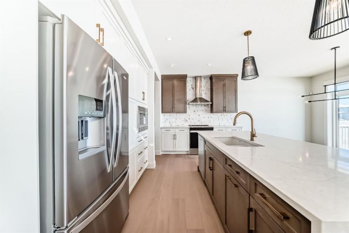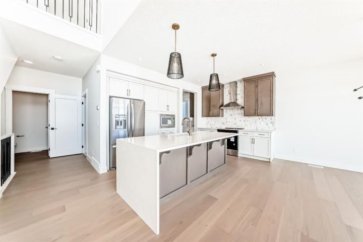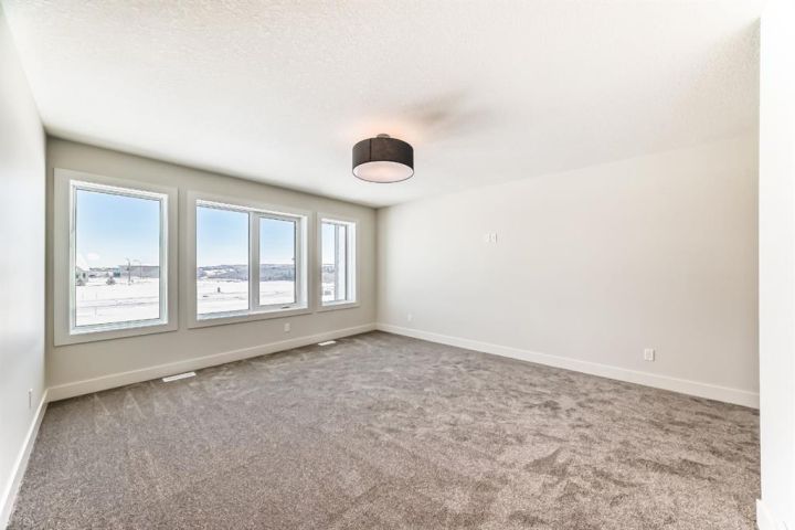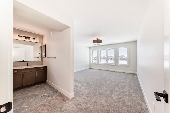 Introducing ECO-PATH by Morrison Homes, your trusted custom home builder is at the forefront of eco-friendly NET ZERO home construction. This ESTATE home is built with high performance insulation, energy efficient windows and advanced HVAC systems to minimize energy consumption. Solar panels and Energy Star appliances further reduce the carbon footprint, while low flow fixtures conserve water. Morrison Homes also prioritizes the use of sustainable, non-toxic building materials, such as recycled wood and low VOC paints, ensuring a healthier indoor environment. Incorporating Smart Home Technology, this home optimizes energy use, providing both comfort and environmental stewardship. * Efficient Electric Heat Pump for Heating & Cooling * 36 Solar Panels to Generate Electricity * R60 Attic Insulation to Reduce Energy Loss * Air Barrier to Improve Homes Energy Retention * Triple Pane Argon Filled Windows with Sunstop Coating * 80 Gallon Heat Pump Hot Water Tank * Heat Recovery Ventilator to Minimize Heat Loss * XPS Rigid Insulation Beneath Basement Foundation * Enjoy the award winning Ellsworth model featuring over 2700 square feet of perfectly planned living space. Enter the home to a sun filled, main floor den which is open to a gorgeous living space with floor to ceiling windows and a soaring 18' open to above. More natural light to be enjoyed with 3 panel sliding door to the South backyard and deck. The kitchen is a warm and inviting space with crafted cabinets, waterfall stone counter on the island and rich Champagne Bronze hardware. Flow through to the servery/beverage centre to the spacious pantry. The large mudroom with closet is a space where everyone can easily walk in from the Triple attached garage. Upstairs features beautiful open loft to soak up all the natural sunlight, a large laundry room with storage cabinets and 2 folding counters, 2 great sized bedrooms...one with a vaulted ceiling and one with a walk in closet. The primary bedroom is perfectly sized and comes fitted with a custom tiled shower, stand alone tub, 2 separate vanities and a sizeable walk in closet. The basement is a blank slate for future development. Live in and create your Legacy! Built on a premium lot, walk to the Pine Creek Ridge, minutes away from shopping, schools, parks and playgrounds - this community has it all.