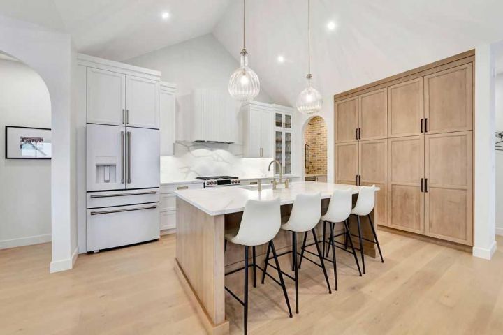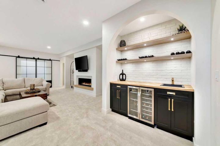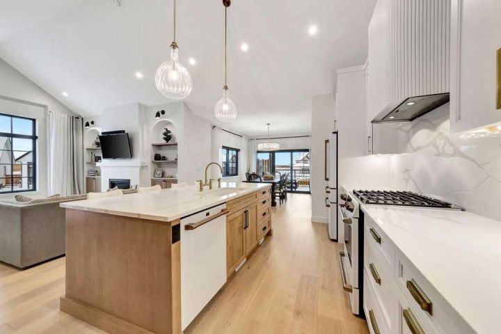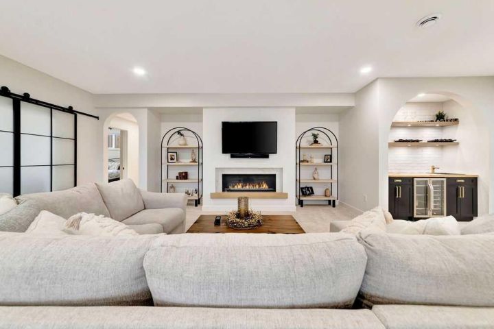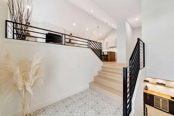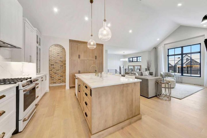 From the moment you step inside this impeccably designed 1,600 sq ft bungalow, it’s clear that every detail has been thoughtfully considered. Vaulted ceilings, architectural arches, and sun-drenched south-facing windows create a sense of openness and warmth that instantly feels like home. The chef’s kitchen is the heart of this home — a true showpiece featuring a 6-burner gas stove, expansive island with seating, and a butler’s pantry ideal for a coffee bar or extra prep space, complete with stylish open shelving and generous cabinetry. Whether you’re cooking for two or hosting a crowd, this space blends beauty and function effortlessly. Gather in the inviting living room, where a gas fireplace framed by elegant arched built-ins sets the tone for cozy evenings. The dining area flows seamlessly to the covered deck, extending your living space outdoors for morning coffee or evening get-togethers. The primary suite offers a peaceful retreat with a spacious walk-in closet and a spa-inspired ensuite featuring dual sinks, a large vanity, tiled shower, and a free-standing soaker tub—a perfect space to unwind at the end of the day. A main floor office adds everyday convenience, ideal for remote work or creative projects. Downstairs, the fully finished basement is designed for entertaining and relaxation. A large family room with games area, gas fireplace, and stylish wet bar with wine fridge make it the ultimate gathering place. Two additional bedrooms, a spacious bathroom, and a storage area complete the lower level. Set on a corner lot, this property also features a triple heated garage and a covered deck off the dining area. Every finish, fixture, and feature has been carefully curated, showcasing exceptional craftsmanship and attention to detail throughout. This is more than a home — it’s a stunning example of thoughtful design and modern comfort.