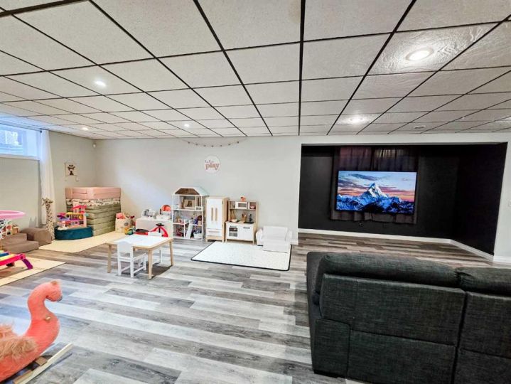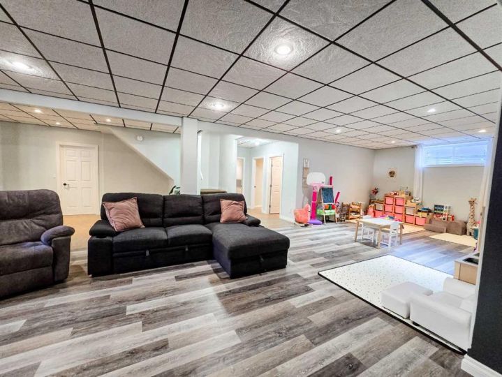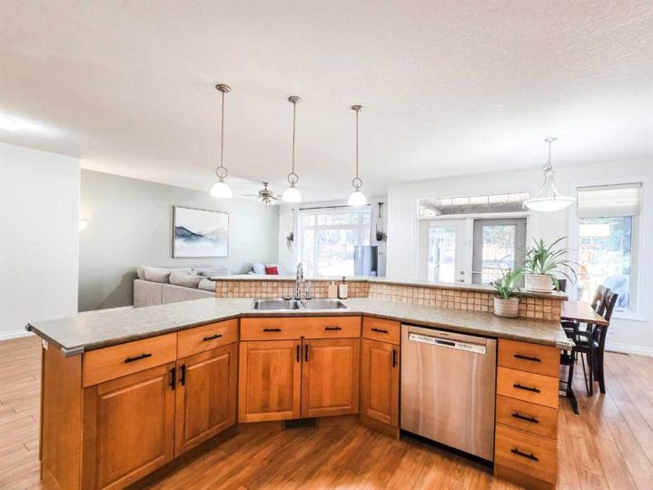 Welcome to Wilshire Estates! This stunning 1,845 sq ft bungalow sits on a beautiful 0.37-acre lot surrounded by mature trees and backing onto a peaceful greenspace — offering privacy and nature right at your doorstep. Inside, you’ll find 5 bedrooms, 3 bathrooms, and central air conditioning for year-round comfort. The open-concept living area is bright and inviting, with a gorgeous view of the backyard. The spacious kitchen features an oversized island with sink and dishwasher, walk-in pantry, plenty of cabinetry, under-cabinet lighting, and high-end stainless steel appliances. French doors from the dining area open onto a covered composite deck with a gas BBQ hookup — perfect for entertaining. The main level includes 3 bedrooms and 2 full bathrooms, including a lovely primary suite with a 3-piece ensuite and private deck. A dream mudroom/laundry room with sink leads to the oversized heated double garage. Downstairs, you’ll love the finished basement with in-floor heat, high ceilings, a wet bar, a family rec room, 2 additional bedrooms, and a 3-piece bath. It’s an ideal setup for movie nights, a home gym, or hosting guests. The fully fenced backyard features built-in cedar benches and planters, an apple tree, two sheds, a new brick patio, and RV parking. Recent updates include paint (2023), new smart kitchen and laundry appliances (2021), and hot water tank in 2023. Located in a family-friendly neighborhood close to trails, parks, and schools — this home truly has it all!