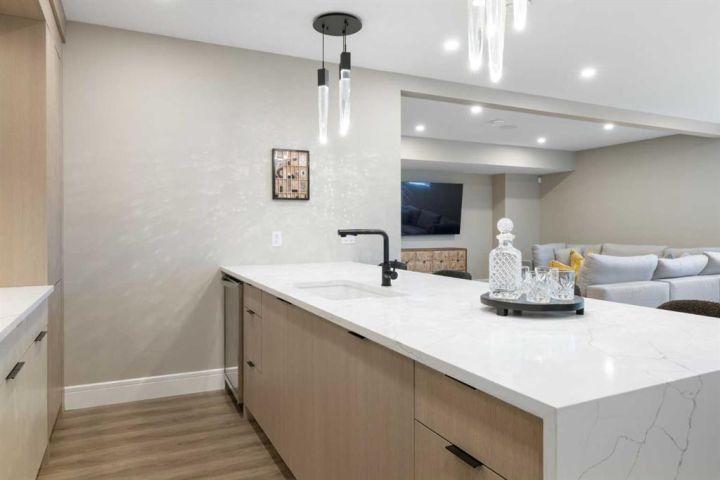 Discover elevated living in Heritage Hills, Cochrane, with this beautifully crafted 2,400 sq ft home by Green Cedar Homes. Featuring 5 bedrooms, 3.5 bathrooms, a fully developed walk-out basement, and a gas fireplace, this residence combines modern style, functionality, and family-focused design. The open-concept main floor is bright and inviting, anchored by a chef-inspired kitchen with premium finishes, quartz counters, and a central island that flows seamlessly into the dining and living areas. The gas fireplace in the living room provides a cozy focal point, perfect for relaxing evenings or entertaining guests. A flex space on the main floor adds versatility for a home office, study, or formal sitting area, while thoughtful details like a walk-through pantry and mudroom elevate everyday living. Upstairs, the primary suite is a private retreat with a spa-inspired ensuite, dual vanities, a freestanding soaking tub, and a generous walk-in closet. Two additional bedrooms and a full bath complete the second floor, offering comfortable space for family. The walk-out basement adds incredible value and flexibility, featuring two bedrooms, a full bathroom, and a spacious family room—ideal for teens, guests, or multi-generational living. Located in Heritage Hills, residents enjoy parks, walking trails, playgrounds, and panoramic views of the Rockies, all just minutes from Cochrane’s amenities.