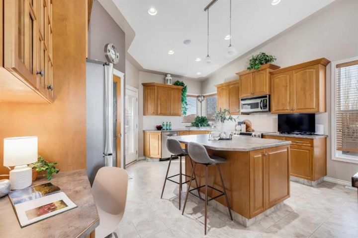 Immaculately maintained bungalow offering just under 2,800 sq. ft. of living space on a massive, beautifully landscaped lot on a quiet Sylvan Lake street. The main level is bright and airy with soaring vaulted ceilings and expansive windows, flowing through generous living and dining spaces. Your private primary retreat features a cozy two-way fireplace, double sinks, an oversized jetted tub, and direct access to the rear deck—ideal for morning coffee. Everyday convenience continues with main-floor laundry and smart storage. The lower level is designed for relaxing and entertaining with feature ceilings, a dedicated media area (built-in TV & speakers), a second gas fireplace, and large bedrooms for family or guests. Comfort upgrades include in-floor heat in the basement and the attached garage, central A/C, a cold room, plus a full-home water filtration system and water softener. Outdoor living shines with a three-tier deck anchored by a fire pit and framed by mature landscaping—room to gather, grill, and play. Parking and hobbies are covered: an oversized heated front-attached garage and a heated rear detached garage—space for trucks, boats, bikes, and a workshop. All this on a quiet street, just minutes to the lake for four-season fun—boating and beach days in summer, skating and ice fishing in winter. come take a look at this beauty today!