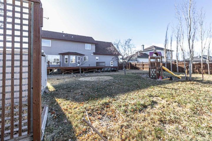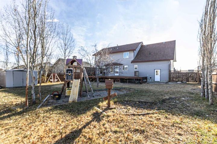 QUARTER ACRE of land for this wonderful home. Just inside the front door of this home and off to the right is the perfect home office…to the left a sitting/room/den/2nd office can be used as a bedroom. just slide out to the MASSIVE DECK 38’9” x 16’3”. And on a QUARTER ACRE…lots of SPACE to spare. Behind the kitchen is the laundry room. Upstairs you find the Masters suite with ensuite and WIC and 2 more good size bedrooms and another full bath. To finish off this floor there is a large BONUS room. Some added bonuses for those looking for the space. In addition to the double attached garage. Enough parking out front on the driveway, the BIG TRAILER or RV. Langdon is a beautiful and peaceful city. . All amenities close by and a fast growing city.... 15 minutes away from city of CHESTERMERE. check it out...
