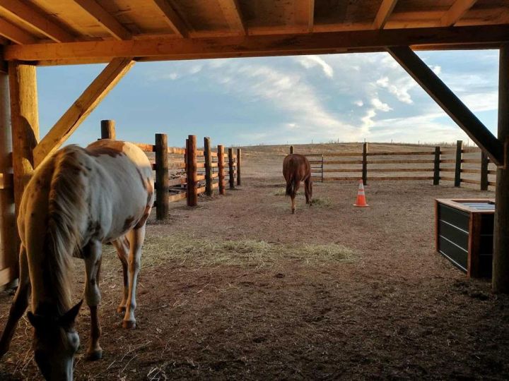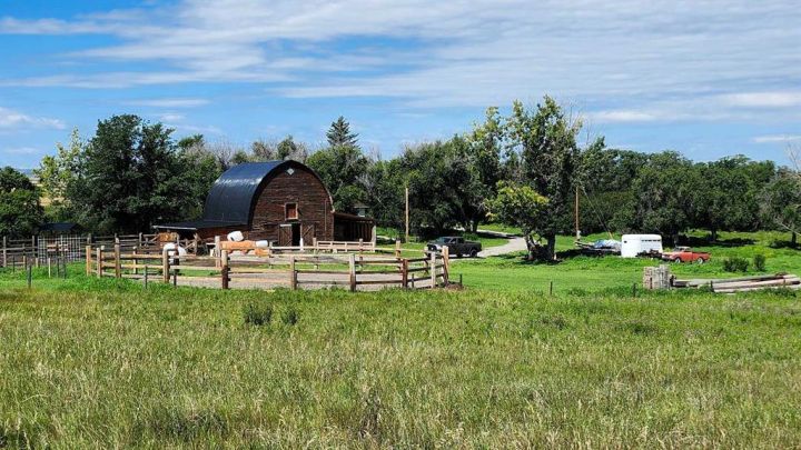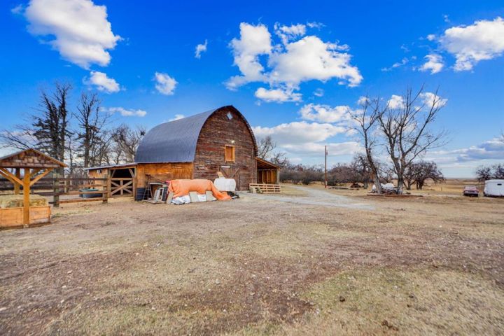 This homestead residence is 774 SF, is nestled on a generous 5-acre parcel of prime land. The home is a true fixer-upper, presenting an opportunity for repairs and renovations to restore its original charm. is sold “AS IS WHERE IS”. it has never been offered for sale, making it a unique chance for buyers seeking a property with historic character and potential. There are services to the home but not hooked up, with a gas meter already installed. Electrical wiring throughout the house is copper and the main breaker shut off for the entire property is at the power pole. The house is serviced by a concrete septic tank and a greywater field. The well is poly-lined, 80 ft deep, and according to Alberta well records, sits on an aquifer, indicating a reliable water source; however, the gallons per minute are unknown. Exterior construction features quarter logs of Douglas Fir with a poured concrete basement. Front of the property has a wood fence (2023), constructed with page wire and 12-inch cedar posts. The large barn is a Dutch-style gothic arch structure, measuring 32 ft by 64 ft, with a main floor of approximately 2,000 SF (including both lean-tos) and a loft measuring 32 ft by 30 ft (960 square feet). The barn is cable-suspended, with cables supporting the walls in all directions. The concrete floor was poured in 1950. The barn and lean-to includes lighting & electricity. The barn’s roof was replaced in 2021. Horse enthusiasts will appreciate this large barn that leads to the covered horse lean-to (2022) with heavy duty rubber mats, a large fenced paddock with an outdoor electrical outlet. The opposite side of the barn offers a lean-to (2024) for hay storage, etc. There is a dedicated 60-ft round pen (2025) w/sand, perfect for training and exercising horses, and approx. 2-3 acres of grazing land. The entire property is fenced with four strands of barbed wire and wood posts and is cross-fenced with numerous gates.. New gravel to the driveway (2023). 30 plus mature trees envelop the property, ensuring privacy and providing shade (oak, apple, elm, poplar, spruce), numerous shrubs, along with mature lilacs. The property boasts an abundance of wildlife, including owls, geese (which nest annually), fox, deer, eagles with nests, red-tailed hawks, and offers scenic views of the mountains. No neighbours on all 4 sides ensure this property remains serene and private. This 5 acre parcel is a Prime Location, ideally situated north of Parkland, 8 mins south of Nanton, 45 minutes from Calgary, just a short drive from the communities of Nanton and Stavely. Enjoy easy access to amenities, schools and local services without sacrificing the benefits of rural living.