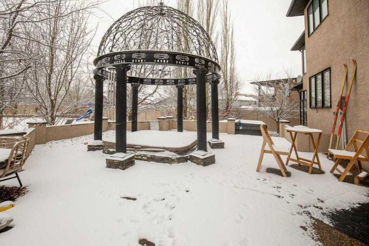 Here is the one you've been waiting for! This STUNNING TWO-STORY has finally hit the market! Perched on an expansive pie lot in the prestigious neighborhood of Fieldstone. The stone facade and soaring pillars offer that WOW factor. Greet your guests into the grand foyer, accented with it's 14 foot ceiling and curved staircase. The extensive floor plan features elements of elegance along with thoughtful functionality. Tray ceilings, crown molding, heated floors, and custom blinds & millwork throughout. Multiple gathering areas - indoor and out- make entertaining easy. Take your pick between lounging in the formal living room or cuddling up in the cozy family room. The gourmet kitchen features warm custom cabinetry and stainless steel appliances. Dine with the added ambience of the stunning gas fireplace. Laundry and a mud room are convenient additions to this level. This impressive two-story home offers SIX SPACIOUS BEDROOMS, each designed with comfort and style. The primary suite serves as a private retreat, complete with a spa-like 5-piece ensuite and gorgeous gas fireplace. The his & hers walk-in closets lead to the convenience of a personal home gym. This prime location could also accommodate an amazing home office. The NEWLY RENOVATED lower level lends itself to entertaining. The large windows allow for loads of natural light and the in-floor heating offers an added comfort. Socialize in the expansive rec room or cuddle up for movie nights in the theatre room. The two generous bedrooms on this floor are joined by a Jack n' Jill 4-piece bathroom. This reverse pit lot allows for an oversized backyard, beautifully landscaped and complimented by both retaining walls and cement enclosures. The oversized double attached garage is heated and provides plenty of indoor parking. Additional upgrades include: TWO BRAND NEW furnaces, a NEW hot water tank, and TWO A/C UNITS! Fieldstone is an exclusive neighborhood featuring lovely walking trails and parks. Along with convenient access to several schools and highway 11. This large luxury home is designed to impress, with an abundance of space, style, and comfort. A truly exceptional property with so much to offer. Treat yourself to a viewing today!