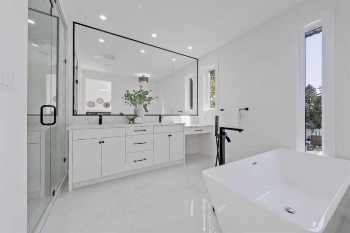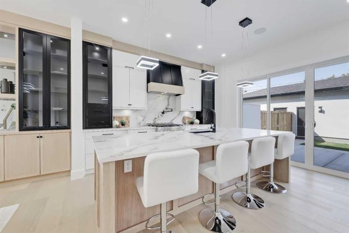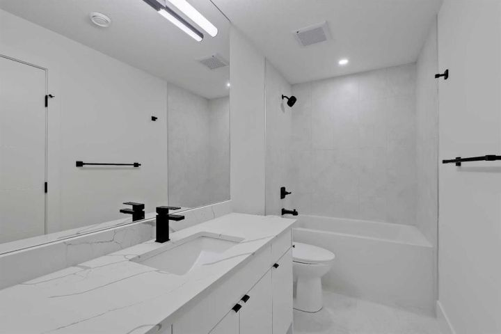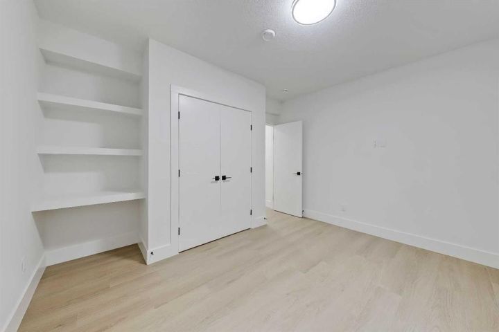Tucked into the heart of SHAGANAPPI, this brand new 5-BED, SEMI-DETACHED home w/ LEGAL 2-BED SUITE (City approved) blends modern luxury with everyday comfort. Step through the arched entry to a welcoming foyer w/ walk-in coat closet, plus a stylish front OFFICE framed by glass doors, built-in desk & cabinetry—ideal for work-from-home. Wide-plank hardwood flows into the open-concept main floor, designed for living and entertaining. The living room centers on a sleek gas fireplace wall w/ designer tile surround and custom built-ins w/ inset lighting. At the back, the chef’s kitchen steals the show, anchored by a dedicated dining area w/ designer lighting, glass-front built-ins & in-cabinet lighting. High-end S/S appliances—gas range, custom hood fan, and DOUBLE WIDE FULL FRIDGE/FULL FREEZER, microwave & dishwasher—shine against an oversized quartz island built for gathering and stunning quartz backsplash with pot filler. A WALK-IN PANTRY w/ custom shelving adds smart storage. Bi-parting doors open to a large patio, extending the space outdoors. A chic powder room and mudroom w/ custom finishes complete this level. Upstairs, the primary suite feels like a retreat, w/ vaulted ceilings and oversized windows. The spa-inspired ensuite has it all: freestanding soaker tub, huge glass shower w/built in bench & rough in for steam, dual vanities w/ makeup desk, plus a dreamy walk-in closet. Two more bedrooms—each w/ TRAY CEILINGS with built-in lighting—share a stylish Jack & Jill bath w/ separated vanity & bath areas. The loft/study offers open shelving and flexible space for reading, working, or relaxing. A well-planned laundry room finishes this floor. The fully finished EXTENDED BASEMENT adds almost 1100sqft of additional living space. The legal 2-bed suite features quartz counters, S/S appliances, custom cabinets, private laundry, and its own side entrance w/ built-in storage. A bonus third space can connect to the suite or be locked off as a private GYM for the main home making it perfect for guests, family, or a rental incentive. Set in the vibrant Shaganappi community, this home puts Calgary’s best at your door. Golf at Shaganappi, stroll parks and pathways, or zip downtown in minutes. With great schools, trendy restaurants, boutique shopping, and easy transit nearby, this is modern city living at its best. All you have to do is move in! *Photos from show suite, finish may vary