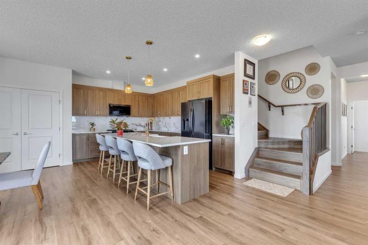 Wake up to serene POND VIEWS framed by EXPANSIVE WINDOWS in the luxurious primary suite of this exceptional 7-BEDROOM, 4-FULL BATHROOM home. Perfectly positioned on a PREMIUM CORNER LOT surrounded by greenspace, it offers privacy, light, and a daily connection to nature that’s hard to match. Inside, upgraded designer lighting complements the chic, modern finishes and floods every room with warmth. A rare MAIN-FLOOR BEDROOM with FULL BATH provides the ideal setup for anyone who prefers single-level living. The LEGAL BASEMENT SUITE is a true income booster, currently leased to a professional couple (no pets) for $1,550 per month through August 2026. Upstairs, discover 4 SPACIOUS BEDROOMS, including an oversized primary retreat with breathtaking morning views of the water, plus a versatile SECOND FLOOR-BONUS ROOM that’s perfect for a media room. Outdoors, the side yard invites summer barbecues and playtime, while a picturesque walking path across the street and a nearby playground keep kids and adults active. Everyday essentials—grocery stores, schools, and local plazas—are only minutes away. This property blends elegance, functionality, and financial upside in one remarkable package. Don’t miss this rare opportunity to own a stylish family home with built-in revenue and an unbeatable natural setting—book your private showing today!