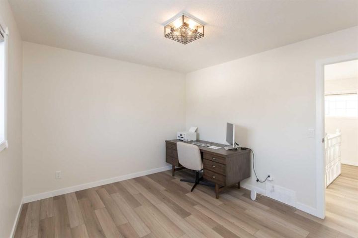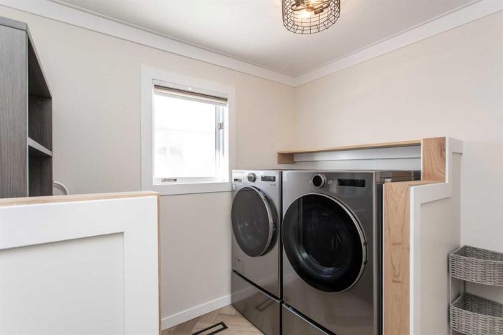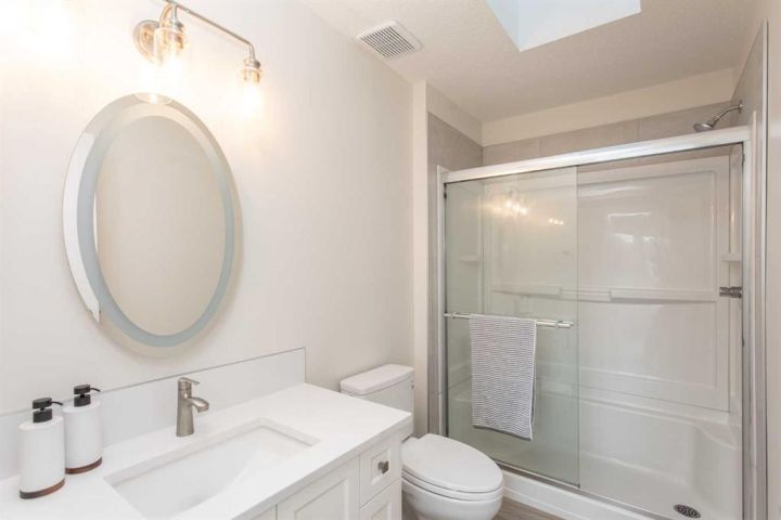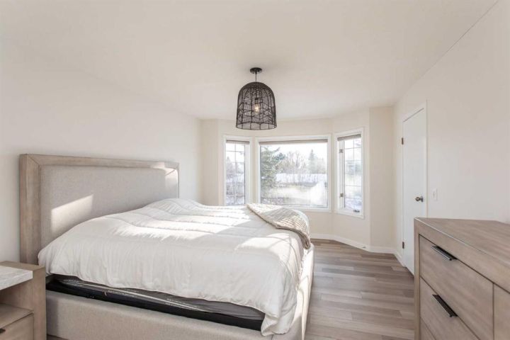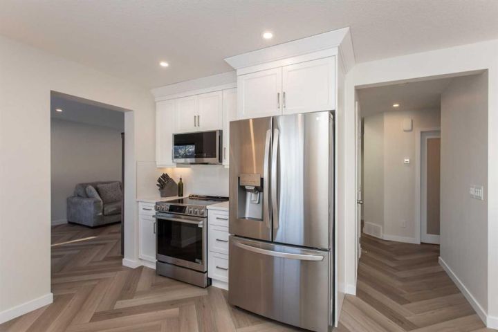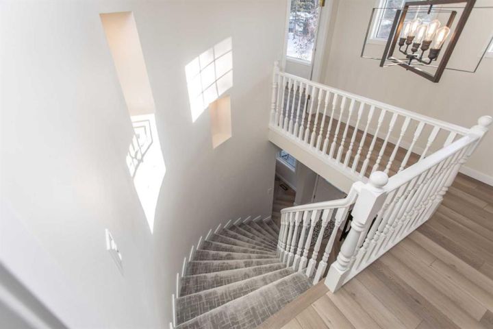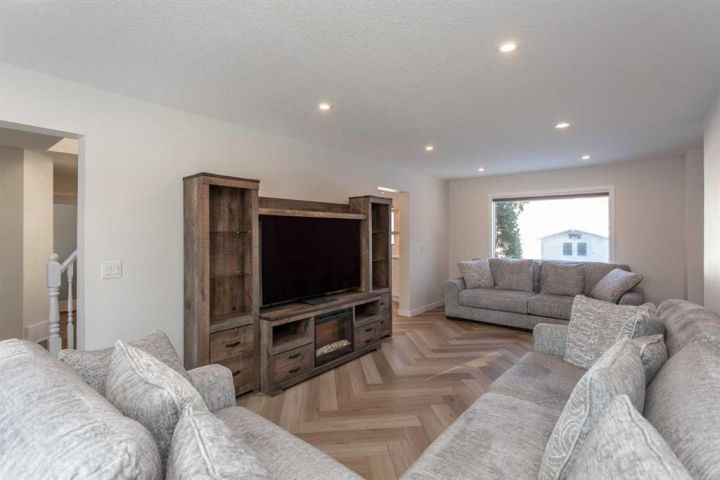 This beautifully renovated English Estates home boasts 1,941 sq ft of living space! Upon entering, you'll be greeted in the grand foyer with curved staircase & the all new vinyl plank flooring with it's beautiful heiring bone pattern throughout the main floor. The brand new kitchen will be sure to impress with all new LG appliances, brushed nickel hardware & taps, silent close cabinets, and a gas fireplace with floor to ceiling marble surround. The true show stopper is the large island with second sink, bar seating, & additional storage. You will appreciate the custom roller blinds thoughout the house. There are three large bedrooms upstairs along with a four piece bathroom. The primary suite is like a retreat with it's south facing windows, walk-in closet, & plenty of space for a king bed. The main bathroom features a jetted tub. The basement offers a fourth bedroom, additional 3 piece bathroom, an extra large family room, and additional space that can be used as a home office. The huge back yard is completely fenced with a vinyl fence, has back alley access, large 10x10 shed, firepit area with brick patio. There is a side gate that offers options for RV storage. This home is like new with new plumbing, new electrical, new panel, new furnace, new appliances, new bathroom fixtures, new kitchen, and new textured ceiling.