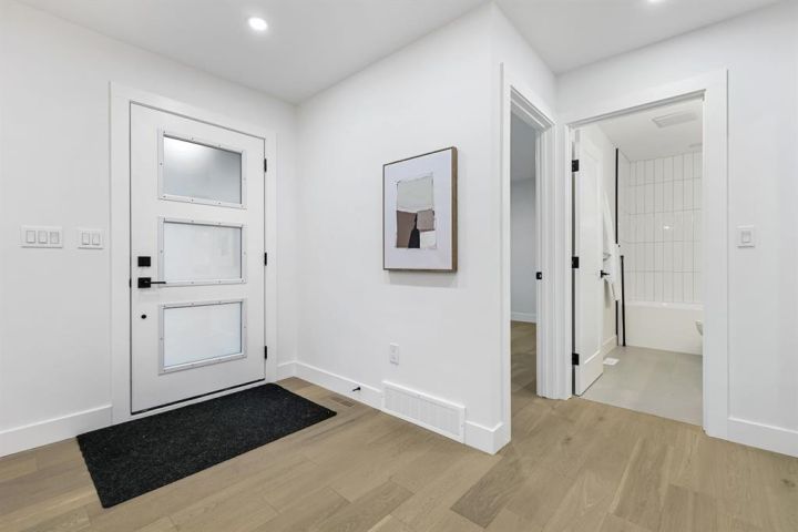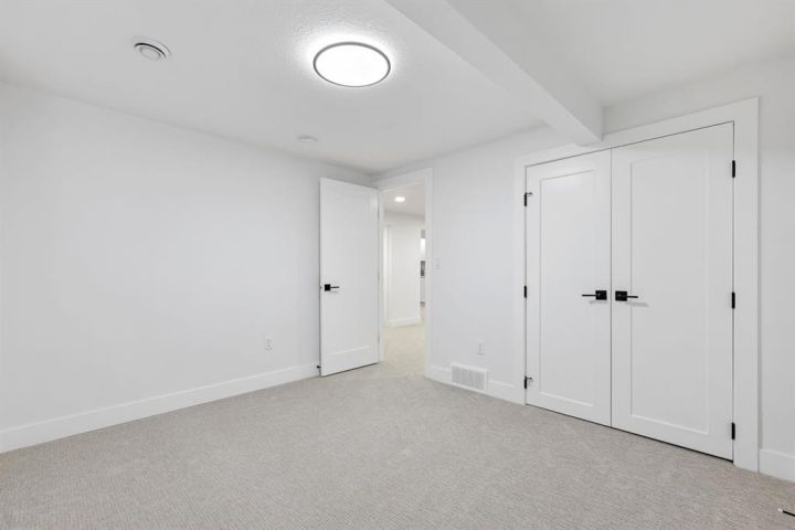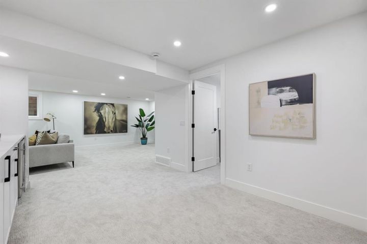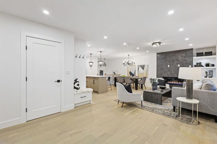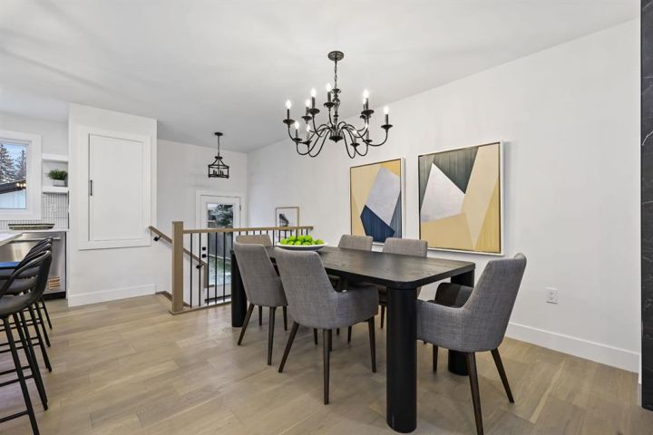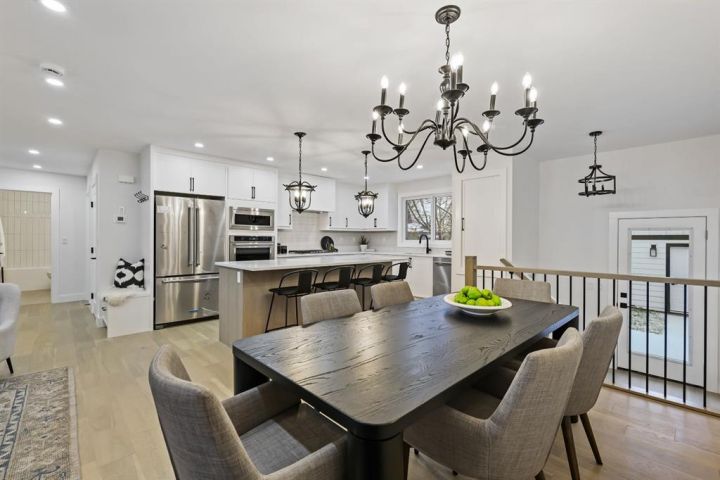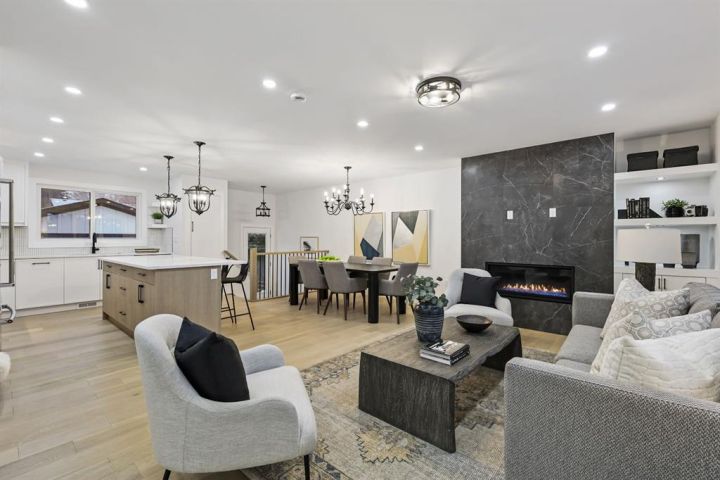 Welcome to this stunning, fully renovated bungalow on a large lot in the desirable, family-friendly community of Silver Springs —a quiet, tree-lined neighborhood steps from schools, public transportation, shopping, and countless amenities. This beautifully renovated 4-bedroom, 3-bathroom home offers over 2,300 sq ft of finished living space, thoughtfully designed with clean lines, neutral colors and warm, natural materials throughout. Exceptional curb appeal provides pride of ownership which continues onto the picturesque entry. The main floor showcases engineered hardwood flooring, decorative lit niches and a stylish gas fireplace. The gourmet kitchen is a chef’s dream with quartz countertops, custom cabinetry, an oversized sit-up island, loads of cupboard space, a full suite of premium appliances including a 5-burner gas cook top with a built-in oven and a formal dinning room. The primary bedroom provides a tranquil retreat with designer lighting, spacious walk-in closet, and a spa-like ensuite featuring a double vanity, custom glass shower with rain head, and heated floors. A second bedroom and full bathroom complete the main level. Downstairs, the fully finished lower level is perfect for extended family or entertainment. It features two large bedrooms, a wet bar, a media feature wall, a full 4pc bathroom, and a separate play/gaming/office space. A brand new Electrolux washer/dryer adds to the convenience in your own laundry room. The fully fenced, landscaped yard offers mature trees, perfect for pets, kids, and entertaining. The oversized double detached garage is a true standout. Additional upgrades include: • Hardy board siding • New high-efficiency furnace & Hot water tank • All-new electrical and plumbing • All new windows throughout. Located less than 5 minutes to Stoney Trail, Crowchild Trail, and surrounded by scenic walking/biking paths, and Edworthy Park—this home truly blends style, comfort, and convenience. Perfect for families, or anyone seeking a turnkey property with premium finishes and functional flexibility. Don’t miss out on this exceptional Buy !