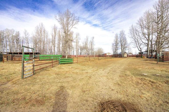 Meticulous 7.09 Acre Hobby Farm, Beautifully Maintained & Fully Set Up. Welcome home to this lovingly cared-for 1978 4 Bdrm / 3 Bthrm Bi-level home tucked into 7.09 private, park-like acres. The home is warm, comfortable & move-in ready, offering many thoughtful upgrades over the years. Attached to the home is a 30 × 32 ft (960 sq ft) heated studio shop with a 2-pc bathroom—previously used as a sewing & fabric business. With its separate entrance & generous workspace, it’s ideal for a home-based business, studio, or conversion into a second or additional living area. A 26 × 28 ft Double garage, a 26 × 31 ft. 2 Bay Shop enjoying an upper mezzanine plus Two 16 × 31 ft lean-toos expand the shop footprint to 1,922 sq ft., all provide excellent storage & work space, all bragging concrete floors, big doors, 4 man doors & power. Horse lovers, cattle producers & hobby farmers will appreciate the 32 × 24 ft two-stall barn with tack room & feed storage, along with an extensive number of steel pens, windbreak fencing & cross-fenced paddocks, all in excellent condition. The property was formerly set up for bison, making it exceptionally strong & secure—ideal for cattle, horses, or whatever critters you love. A covered livestock working area & two automatic waterers, complete this turnkey setup. For added versatility, the property also includes a 16 × 32 × 14 ft RV shop, 12 × 8 ft well house, 10 × 12 ft storage shed & a 12 × 16 ft cabin with Bunk bed for guests or kids’ adventures Outside, the yard is a true retreat—beautifully landscaped with mature spruce, fruit trees, a tranquil pond & a cool little bridge. Peaceful, private & designed with pride. Conveniently located just minutes north of Caroline, or an easy hop south of Hwy 11 from Rocky Mountain House, right off paved Arbutus Road. So much value, infrastructure & thoughtful care—this acreage is truly a rare find.