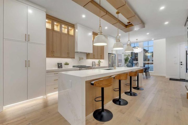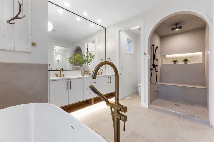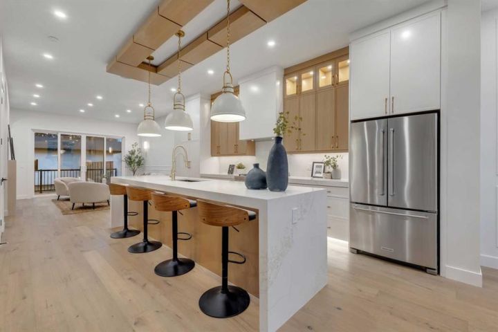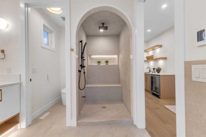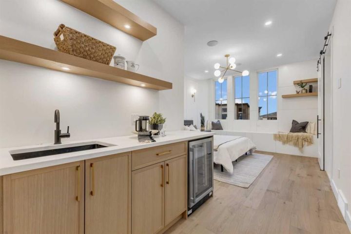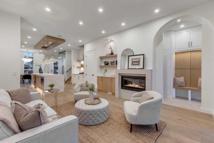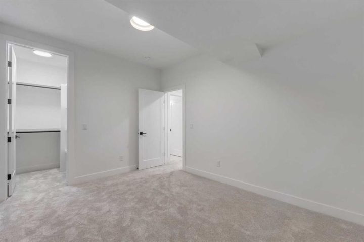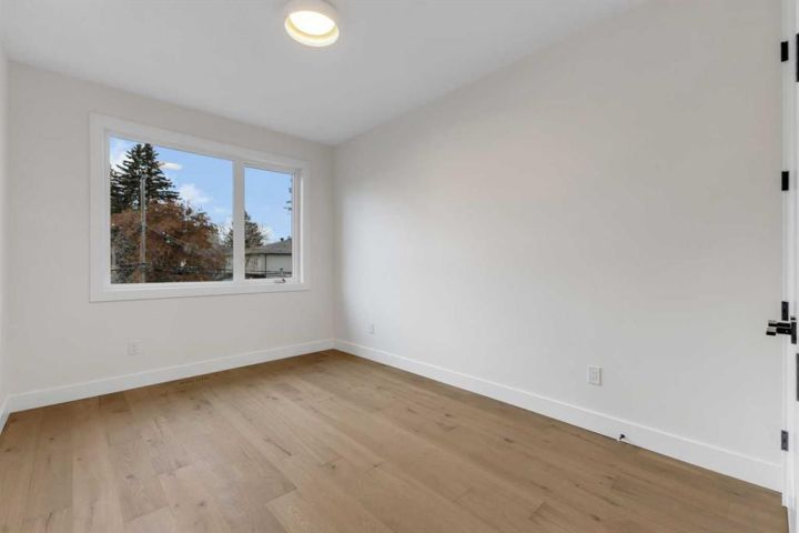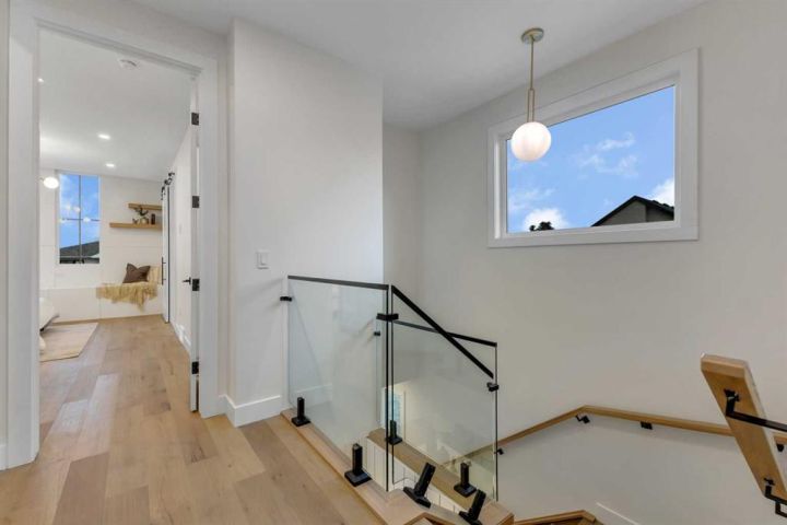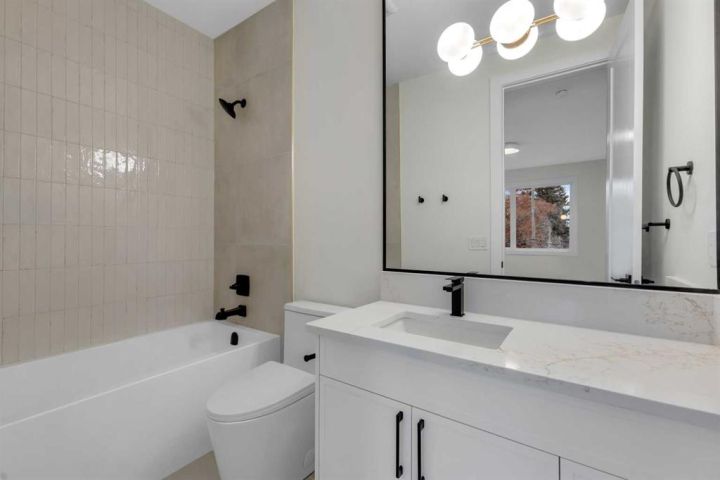 MOVE-IN READY | HIGH-END FINISHES | SITTING ON A 50x126 LOT IN BANFF TRAIL! Don’t miss your chance to own this brand-new, luxury semi-detached infill in the highly sought-after community of Banff Trail! Perfectly situated on an oversized 50x126 lot, this home combines modern elegance with exceptional craftsmanship and premium finishes throughout. Spanning over 3,068 sq ft of meticulously designed living space, this residence features 4 bedrooms, 4.5 bathrooms, and upscale details around every corner. The main floor welcomes you with a bright, open layout highlighted by soaring 12-ft front windows, a recessed ceiling, and a glass-enclosed office with an open-to-below design that floods the home with natural light. The chef’s kitchen is a true showpiece, featuring ceiling-height custom cabinetry, quartz countertops, a designer tile backsplash, and a large central island with bar seating — perfect for entertaining. The living room centers around a sleek gas fireplace with full-height tile surround and elegant arched niches for added architectural charm. Dual sliding doors open to the rear deck and backyard, creating an effortless indoor-outdoor flow. Upstairs, the primary retreat offers a luxurious escape with a recessed ceiling, two walk-in closets, and a spa-inspired ensuite complete with heated tile floors, dual sinks, quartz counters, a freestanding soaker tub, and a fully tiled glass shower. Two additional bedrooms, each with private ensuites, and a laundry room complete this level. The fully finished basement with separate side entrance is designed for versatility — featuring a spacious rec room with built-in entertainment center, a wet bar, home gym, and a large bedroom with walk-in closet and full bath — ideal for guests or extended family. Located just steps from West Confederation Park, U of C, McMahon Stadium, and top-rated schools, this home delivers the perfect balance of luxury, lifestyle, and inner-city convenience. Quick access to Crowchild Trail and 16th Ave ensures easy commuting anywhere in the city. This Banff Trail gem is move-in ready — offering premium finishes, modern design, and an unbeatable location.