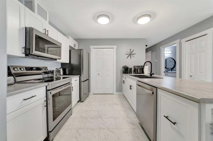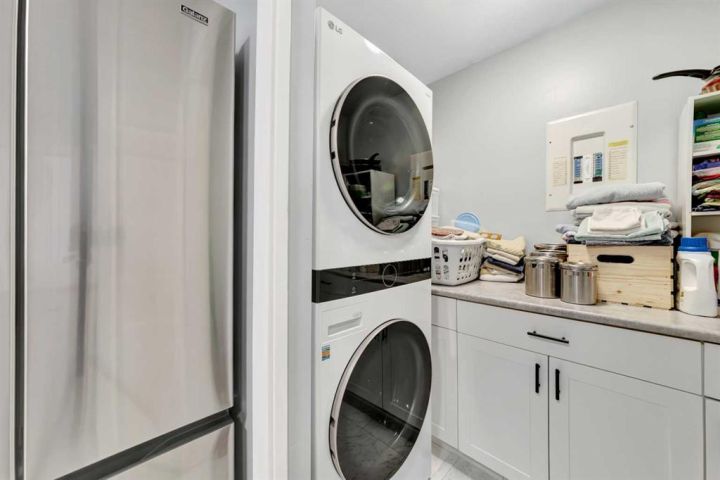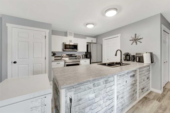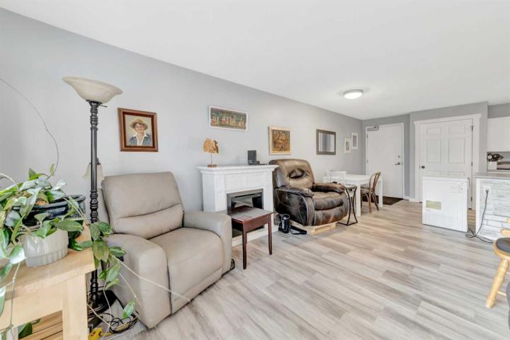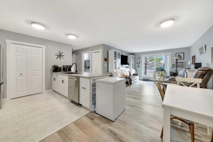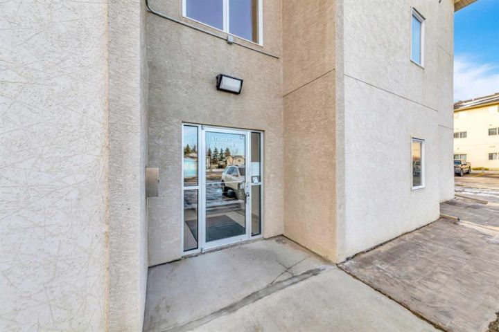 Welcome to La Tierra Condominiums, where comfort and convenience come together. This ground-floor corner unit features a bright, south-facing patio, ideal for enjoying morning coffee or relaxing evenings. Inside, you’ll find stylish upgrades throughout, including refreshed flooring, updated cabinets, and a beautifully renovated bathroom. The kitchen is both functional and inviting, featuring ample cabinetry and all necessary appliances. A spacious laundry room features custom-built-ins, providing excellent storage and workspace, and a primary bedroom featuring a generously sized walk-in closet. Stay comfortable year-round with the wall-mounted air conditioning unit. Condo fees of $364.46/month include heat, water, lawn care, snow removal, exterior maintenance, and more, offering a simple, worry-free lifestyle. Assigned parking stall included. This home is ideal for first-time buyers, investors, or anyone looking to downsize to an affordable, updated, and ready-to-move-in unit. Located close to parks, shopping, and schools in a well-managed complex.