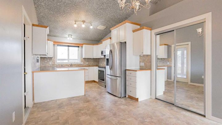 Welcome to this well-kept bi-level home with an attached single garage, ideally located in the SW Hill area built in 2013. The main floor features vaulted ceilings and abundant natural light. The kitchen offers white cabinetry, stainless steel appliances, and plenty of counter space, opening to the dining area and living room for a bright, connected feel. Upstairs, you’ll find two bedrooms, including a spacious primary suite with a walk-in closet and ensuite bathroom, plus an additional full bath. Just off the dining room is an enclosed sunroom with a gas line, perfect for relaxing or entertaining. The lower level offers a large, bright family room, two more bedrooms, and a bathroom with a corner shower. The laundry room includes a newer washer and dryer and there is also some additional storage space. Outside, the fenced yard includes room for under-deck storage. Recent updates include fresh paint throughout the home. The attached single garage is heated and insulated for year-round comfort. Located in a central area of town, this home offers convenience, comfort, and great value. Call today to schedule your personal viewing! ** Please note there are some virtually staged images**
