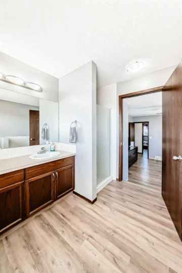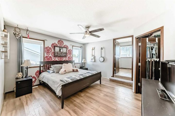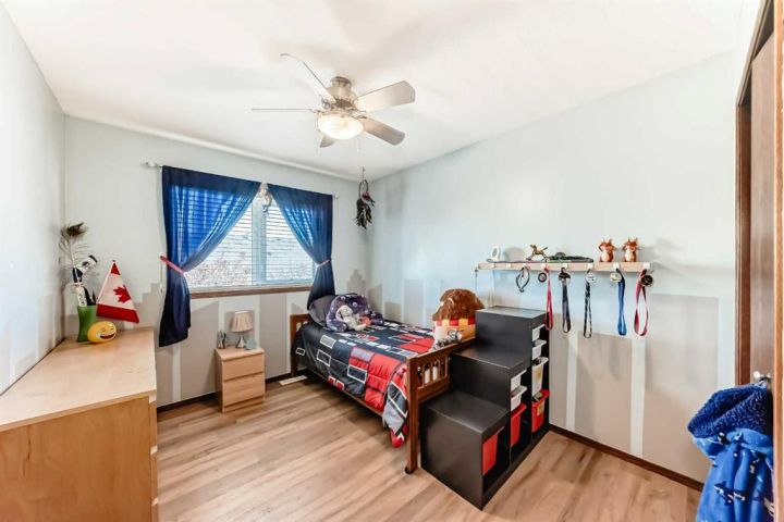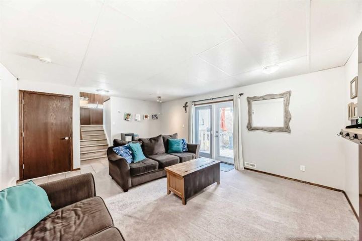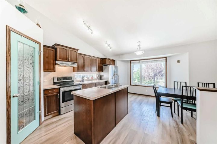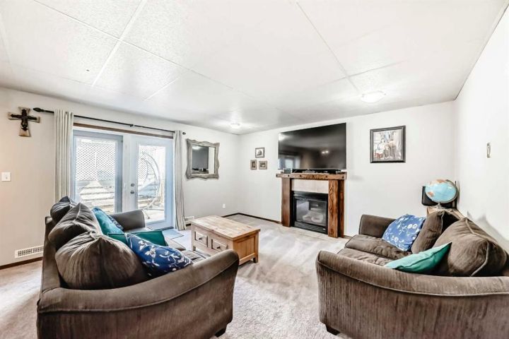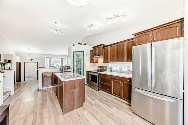 OPEN HOUSE, SATURDAY NOV 15 FROM 2-4PM****Quiet location on the outskirts of Strathmore. Country living in the city with this beautiful four-level split built by Curbrelan Homes. With charming street appeal, a welcoming veranda, and mature landscaping, this home makes a lasting first impression. The main level offers an open concept from the living room to the dining area and kitchen. The kitchen is a true highlight, featuring an abundance of cabinetry, a corner pantry, a large L-shaped island with an eating bar, and an additional working island with a sink. Kitchen also boasts stainless steel appliances. There is plenty of room for both a dining table and a spacious living area, with large windows that fill the home with natural light. Upstairs you will find three generously sized bedrooms, including a master bedroom with a walk-in closet and a raised four-piece ensuite complete with a separate tub and shower. The additional bedrooms overlook the expansive backyard, which measures 50 by 118 feet. There is another full four-piece bathroom on this level. The lower level, just off the kitchen, is above grade and offers a large great room with a cozy gas fireplace and garden doors that open to the west-facing backyard. Carpet (recently replaced) and tile on third level as well as central air- conditioning . This outdoor space is a true retreat with mature trees and shrubs, plenty of room for patio furniture or even a swimming pool. The yard also has a view of the green space to the south and west. Walk out basement has its own separate entrance leading to a private patio, making it an excellent option for extended family or an illegal suite. Currently, it includes one bedroom and a large living area, but the layout allows for flexible use of the space. Recent updates include shingles in 2025, a hot water tank in 2021, and new garden doors in 2024, all completed with proper permits. The home also features a double heated attached garage with two electric garage door openers. Perfect for investors or first-time buyers, this home offers tremendous value for the price. Shows 10 out of 10!
