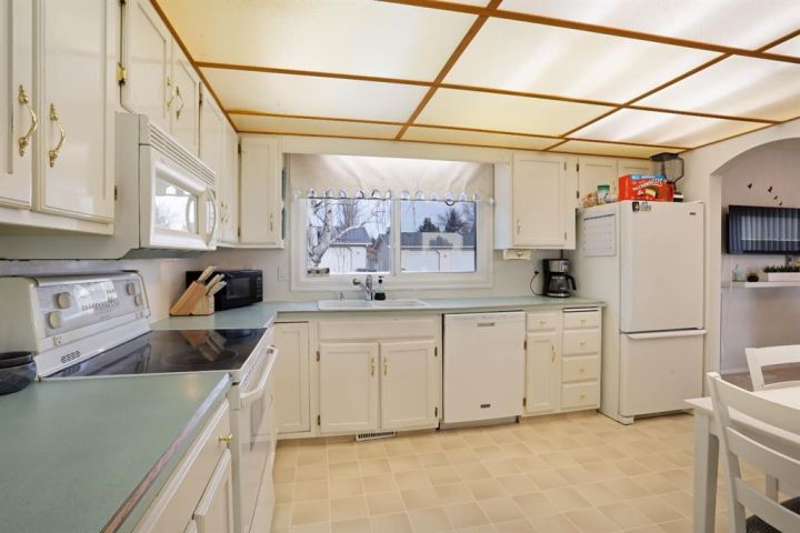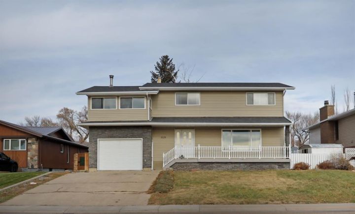 Welcome to 1120 – 2 Avenue E, a spacious and inviting family home perfectly positioned across from the Brooks Golf Course. This property combines character, functionality that’s ideal for families who value both comfort and convenience. The main floor welcomes you with a bright, south-facing living room filled with natural light and unobstructed view of the golf course across the street. A formal dining room provides a great setting for family gatherings, while the kitchen features timeless white cabinetry, generous countertop space, and eat-in nook. Also on this level is a convenient 2pce bathroom that includes laundry facilities. Upstairs, you’ll find 4 comfortable bedrooms, a 4pce bathroom, and a cozy family room with beautiful cedar accent wall, abundant windows, and a warm wood stove…perfect for relaxing evenings or movie nights. The basement adds even more living space with a second family room featuring a gas fireplace, a den or hobby area, a 3pce bathroom, and plenty of storage. Enjoy outdoor living on the screened back deck overlooking a large, private backyard complete with underground sprinklers and RV parking. A single attached garage and concrete driveway provides ample parking. This home offers excellent value in a sought after location close to schools, parks, and the golf course.