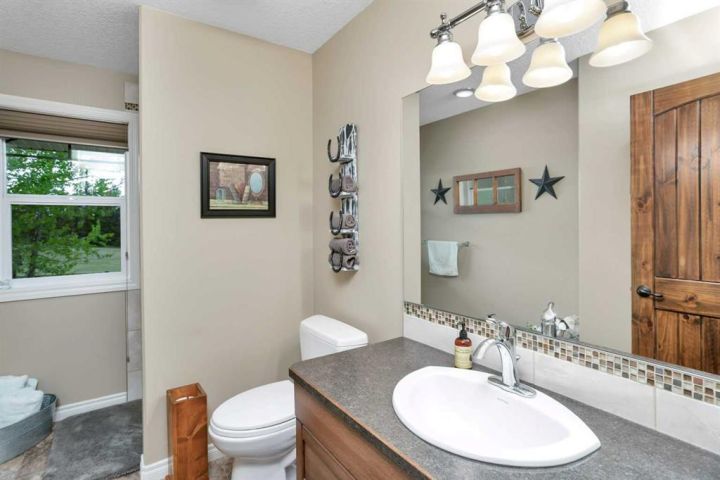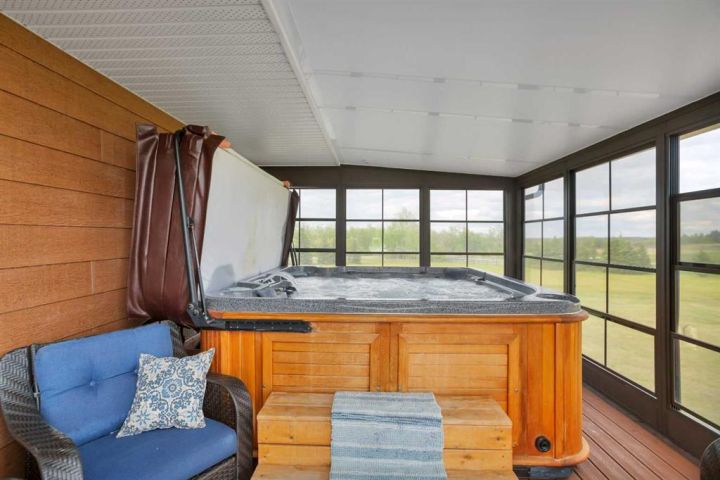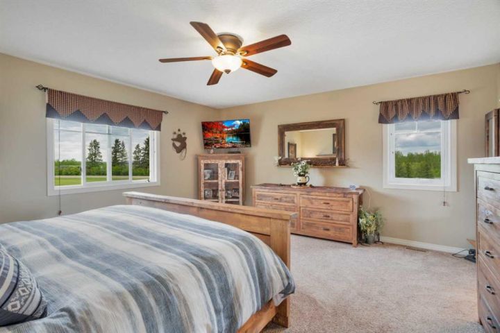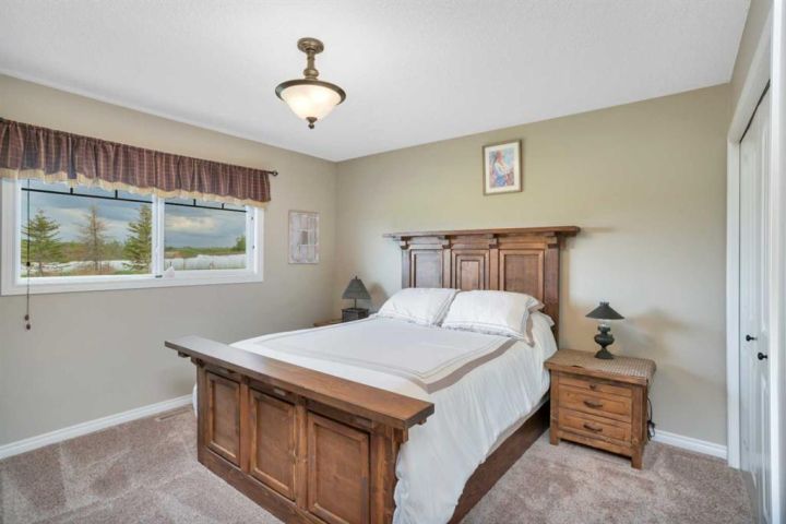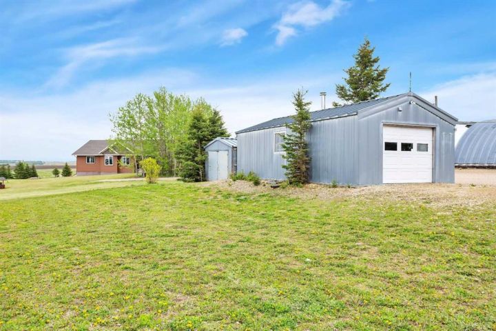 Welcome to your personal slice of peace and quiet with open spaces that will have you fall in love with this property from the moment you see it. Just 19 minutes to Lacombe, Ponoka or Rimbey and 10 minutes to Meridian Beach, this custom built bungalow is located on 5.93 acres. The roof lines, layout, quality of materials and craftsmanship are second to none. Designed with your family in mind, it combines functionality and elegance with a touch of simplicity. With more than 3758 sq ft of living space including a spectacular sunroom complete with hot tub, a massive 40 x 100 heated shop, open concept main floor and a design you won’t find anywhere else this home is everything you're looking for and more. The building materials include Canexcel board composite siding and Trex decking. Open your front door and escape from the real world while you bask in the sun on your west facing verandah. A practical foyer which is tastefully done for laundry leads into the kitchen featuring custom maple cabinets and inviting breakfast bar. The large living room with soaring ceilings is complimented by a wood stove to warm you on the chilly evenings. Off the living room is the large primary bedroom complete with a five piece ensuite and jacuzzi tub to relax and watch nature out the window plus a large walk in closet. The living room seamlessly flows into the dining room. Off the dining room are sliding doors to your composite deck and sunroom with 8 man 2018 Arctic spa hot tub where you’ll sit and enjoy fresh air and sunshine with unmatched views. The kitchen features under-counter lighting, large island, walk in pantry and did we mention soft close drawers and cupboards. Enjoy sunsets or watch the kids from every room. Off the kitchen there are two spacious bedrooms one currently being used as an office and a 3 piece bath. There is a plug off the verandah for your RV as well. The stairs lead down to a bonus room, large enough for a pool table and/or games and a gorgeous barn door which open to tons of storage and boasts infloor heat. Down the hall is the two tiered theatre room plus two more bedrooms and the furnace/utility room. Now to the outdoors-every guys dream shop 40 x 100 and insulated and heated! Imagine what you could do with that! A single car garage with radiant heating and a large shed with cement floor. Tons of room for gardens or if you’d like to build a fence bring the horses or chickens. Looking for classy country living? This is 'THE ONE'!
