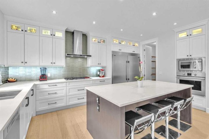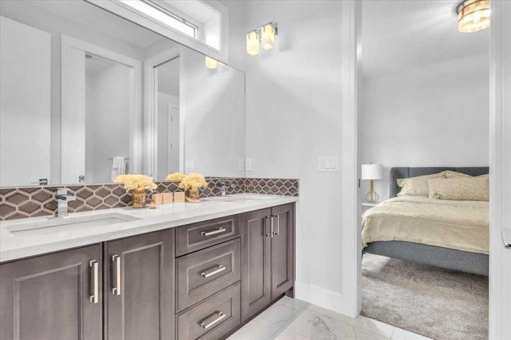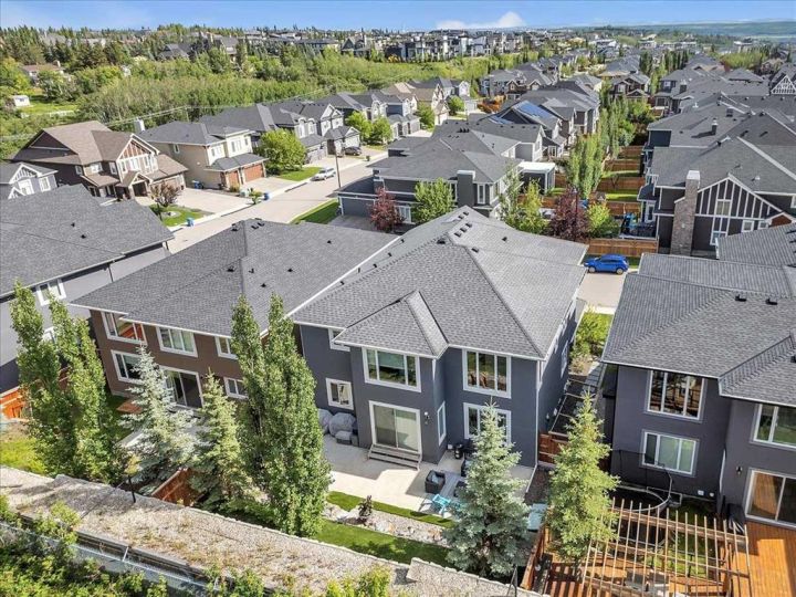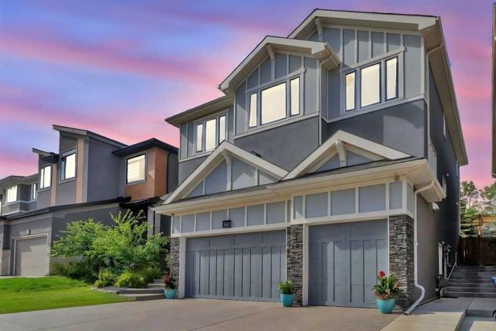 EXTRAORDINARY ASPEN WOODS ESTATE HOME. Attention discerning buyers — make time to view this 4,700 sq ft custom-built show-home-condition residence, with stucco-finishing, in prestigious Aspen Woods. Nestled on a quiet street backing onto green space, this perfectly laid-out estate home offers estate living of comfort, style, and flexibility with functional sophistication and desired upgrades. The main floor features a distinct office near the front, a spacious 19-foot high ceiling living room to one side, a bright dining area in the middle, and a seamlessly integrated chef’s dream kitchen on the other side. This professional-grade kitchen boasts full-height cabinetry topped with French glass doors, a Wolf-brand gas cooktop framed in quartz countertops, a chimney hood fan, and a 60-inch refrigerator, plus a built-in wall oven and microwave. The ample-sized walk-thru pantry with more built-in cabinetry directs you to the mudroom towards the garage, and a windowed flex room (currently being used as a home theatre). Stairs in the centre of the home lead to a NINE-FOOT high 2nd floor with 4 large bedrooms, 3 FULL bathrooms, and a tray-ceiling bonus room with large South-facing windows. The elegant primary retreat, also with tray ceiling, has a large window facing the private green space, and a 12X16 ft ensuite with in-floor-heating, double-sink vanity with drawers, a fully glass-enclosed shower, and an elegant stand-alone tub plus a private WC. Ensuite conveniently leads to the laundry room with a deep sink. Two other bedrooms share a Jack & Jill bathroom, while the fourth has its own full bathroom. The fully-finished in-slab heated basement with an efficient 11 ft-high insulated concrete foundation (ICF) has several large windows AND an above-ground door on the side. The hallway from this lower entrance and triple garage opens to a huge 28X16 ft recreation room with generous wet bar facilities, the 4th full bathroom, 5th bedroom, and a fitness room with large window & double doors. Enjoy a 50-foot-wide backyard oasis with low-maintenance artificial turf, mature trees, and a stone retaining wall with a field above for optimal privacy. Additional Highlights: 1) Heated triple garage with epoxy-finished floors 2) Freshly painted, no-smoking, no-pet home 3) full 8-foot interior doors, 220V outlets on every level 4) Close to shopping, and major thoroughfares, plus premier in-community private schools like Webber Academy, Rundle College, & Calgary Academy. Experience the virtual tour to appreciate the thoughtful layout and unparalleled comfort, and then have a look in person.