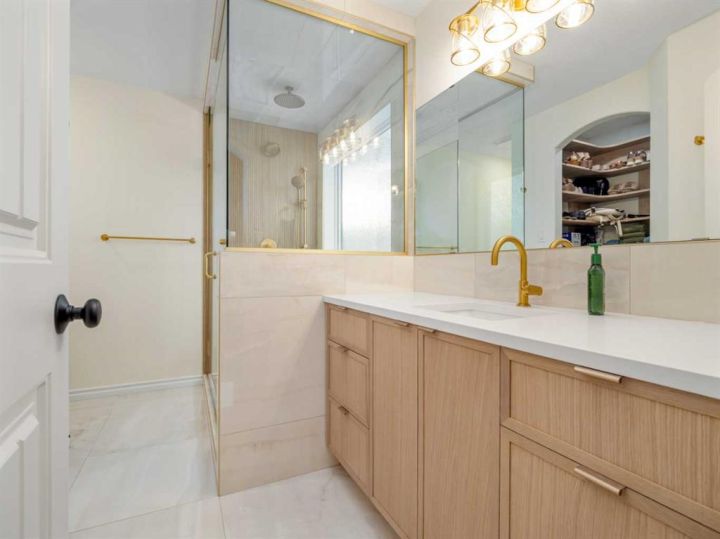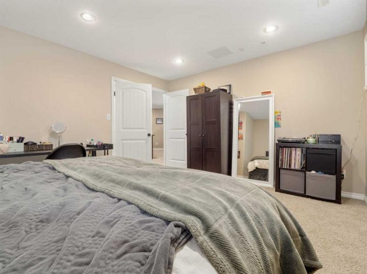 Beautiful Bungalow Living with nice updates in desirable South Lethbridge, close to all big box shopping, restaurants, grocery store, medical clinic, & other amenities! Stucco exterior with stone accents. Roof has newly installed "Net Zero" solar system(2025) that allows you to make money on power in the warmer months, and use those funds to offset your costs in the colder months. Inside you'll find a nice open plan with vaulted ceilings on main. Main floor has hardwood floors in living room and vinyl tile in in foyer and kitchen. Home features a bedroom/office just off the entry. Open plan for living room, kitchen, and dining room. Kitchen was remodeled in 2021 and features wood and quartz counters, white cabinets, stainless steel appliances, skylights above, and a 5 foot deep corner pantry. Living room has gas fireplace and large windows for plenty of natural light. Door to deck out back from dining room and primary bedroom. Primary bedroom also has vaulted ceiling and features NEWLY RENOVATED(2025) 3 piece ensuite with walk-in tiled shower and walk-in closet with organizers. A 3rd bedroom, another full bath, and a laundry room/mud room connected to the garage entrance are also on the main. Basement is fully developed with large family room that features wet bar, gas fireplace, and walk-out garden doors to covered patio below deck. Basement also has 2 more bedrooms and a flex room with double doors(currently being used as a 6th bedroom) that could also be used as a gym/craft room/music room. Another full bath completes the basement. Double attached garage for your vehicles with 220v plug that can be used to add an EV charger, RV plugin, or heavy duty tool machine. Yard is fenced and landscaped with underground sprinklers. Home has convenience of central a/c and back alley access. Take a short walk to Coulee Creek Park & Pond as you enjoy living in this fantastic neighbourhood close to everything you want & need!