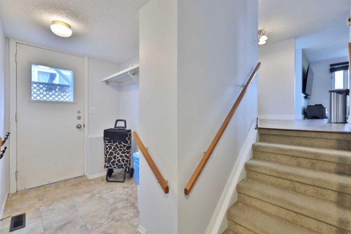 This lovely Century Meadows duplex is ready for you to call it HOME! It offers 4 bedrooms, 2 washrooms on 4 levels of living space. Welcoming you into the home is nice exposed aggregate sidewalk. As you enter the home, the main level has a spacious living room looking out to the west and the kitchen/eating area soaks up the south facing sun. The upper level has 2 bedrooms and the main 4 pc. washroom. The lower level has 2 more bedrooms and a nice 3 pc. washroom and one of the BEST parts is the SIDE ENTRY to the south patio and fenced yard. (providing perfect access for that independent teenager or family member) The basement (4th level) has a HUGE family room, laundry space, storage room AND crawl space under the 3rd level. Back out on the covered patio, you'll appreciate the privacy of the small yard, access to the single car garage and the extra parking. The most recent upgrades are fresh paint and NEW SHINGLES on the house and garage in 2024 (plus 2 new vents in the garage).