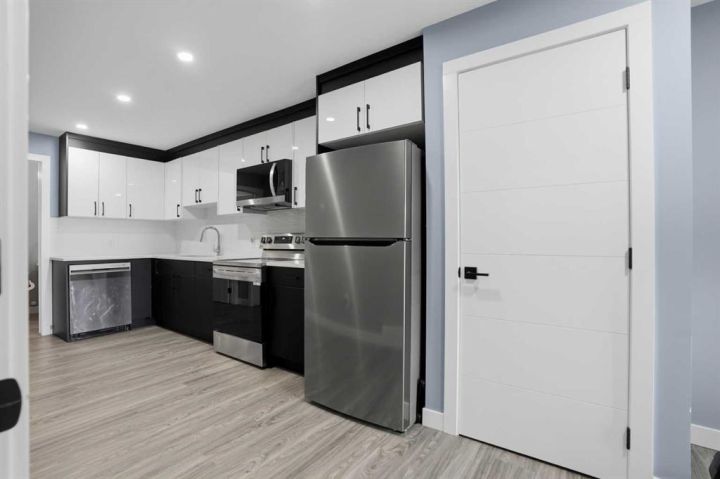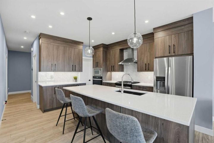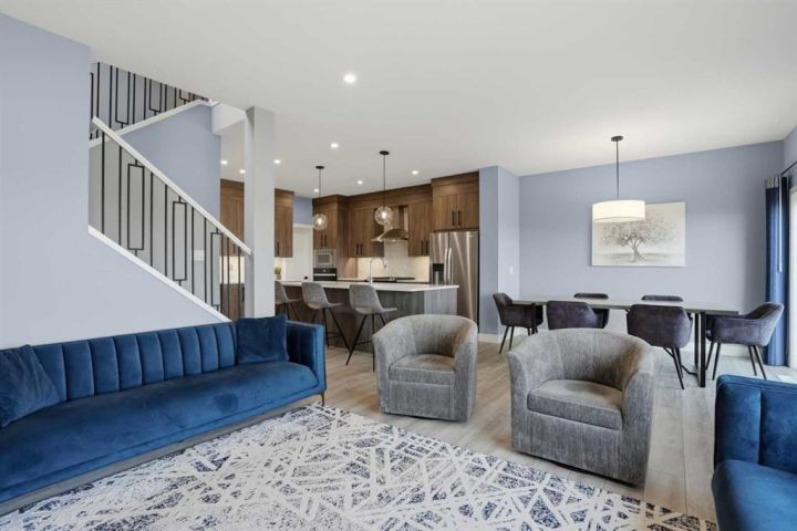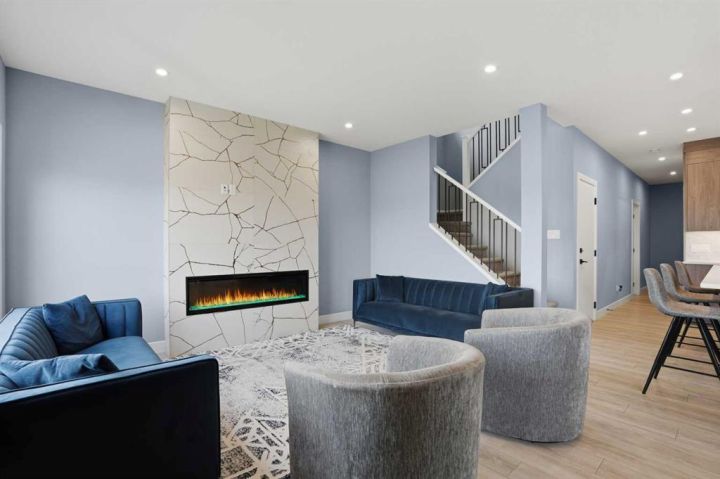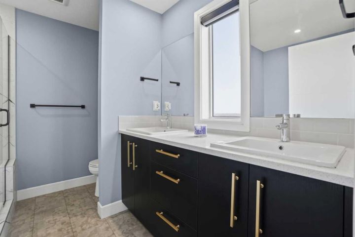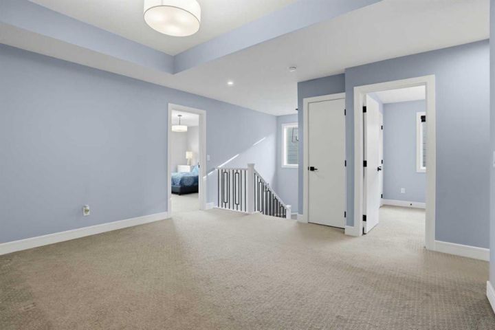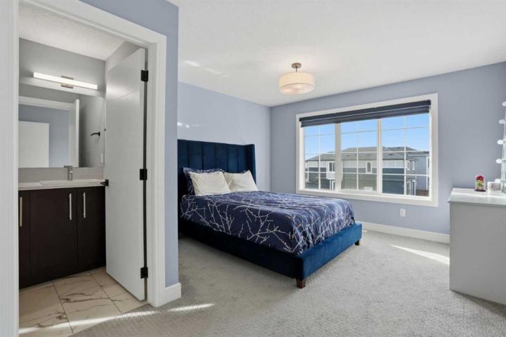 LEGAL 2 Bedroom WALKOUT Basement Suite | Separate Entry & Laundry | Backs onto Greenspace & Walking Paths | No Neighbours Behind | 2,321 SqFt | High-End Finishes | Main Level Bedroom with Private 3pc Ensuite | 2pc Powder Room | Mudroom | Walk-in Pantry | Quartz Countertops | Stainless Steel Appliances | Gas Stove | Full Height Cabinets | Extended Kitchen Island with Bar Seating | Open Floor Plan | High Ceilings | Large Windows | Dining Room with Sliding Glass Doors to Deck | Deck with Privacy Screen & BBQ Gas Line | Electric Fireplace with Floor-to-Ceiling Stone Feature Wall | Upper Level Bonus Room with Tray Ceilings | 2 Primary Bedrooms each with Walk-in Closets & Ensuite Baths | 5pc Ensuite with Freestanding Deep Soaking Tub, Walk-in Shower & Double Vanity with Quartz Countertops | 4pc Ensuite with Tub/Shower Combo | 2 Additional Bedrooms & Main 4pc Bath | Upper Level Laundry with Sink & Cabinetry | Incredible Location! Welcome to your stunning 2-storey family home in Walden, perfectly positioned backing onto greenspace and walking paths—no neighbours behind! The main level features an open floor plan filled with natural light, including a chef’s kitchen with quartz countertops, stainless steel appliances, gas stove, full-height cabinetry, and an extended island with bar seating. The kitchen connects directly to the pantry for great dry goods access while cooking. The dining area opens to the rear deck with a privacy screen and built-in BBQ gas line, perfect for entertaining. The living room centers around an elegant electric fireplace with a floor-to-ceiling stone feature wall. Completing the main level is a bedroom with a private 3pc ensuite and a 2pc powder room for guests. Upstairs, enjoy a spacious bonus room with tray ceilings and four bedrooms, including two primary bedrooms, each with walk-in closets and private ensuite baths. The first primary offers a luxurious 5pc ensuite with a freestanding deep soaking tub, walk-in shower, and dual vanity with quartz countertops. The second primary features its own 4pc ensuite with a tub/shower combo. Bedrooms 3 and 4 are both generously sized and share the main 4pc bath. The upper-level laundry room is conveniently located and includes a sink and cabinetry for added storage. The LEGAL 2-bedroom walkout basement suite is fully registered with the City of Calgary—perfect as a mortgage helper or private living space. It offers its own entry and laundry, a stylish two-toned black and white kitchen with full-height gloss cabinets and stainless steel appliances, and an open-concept living and dining area. Each bedroom is situated on opposite sides of the basement for added privacy, with one featuring a cheater door to the 4pc bath, creating an ensuite feel. Backing onto serene greenspace with access to walking paths, this exceptional home blends luxury, functionality, and flexibility—book your private showing today!