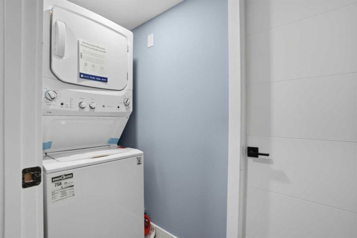 Basement: Fridge, stove, dishwasher, stacked washer and dryer