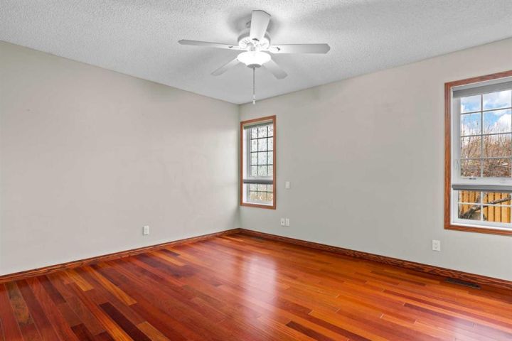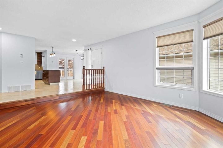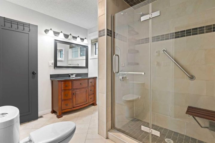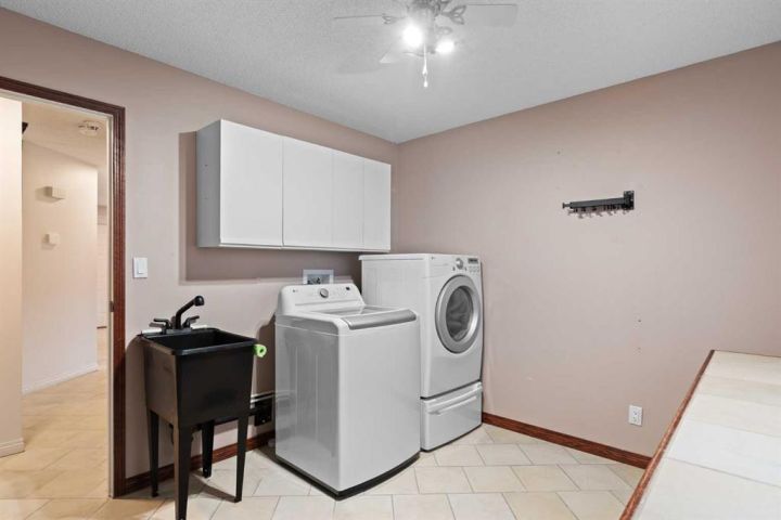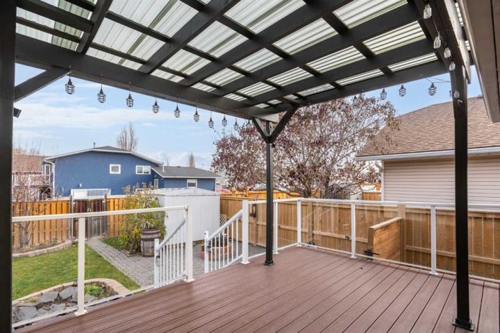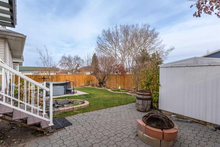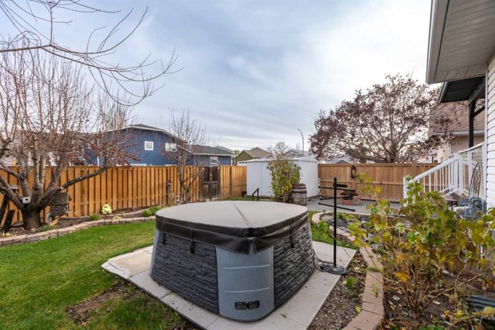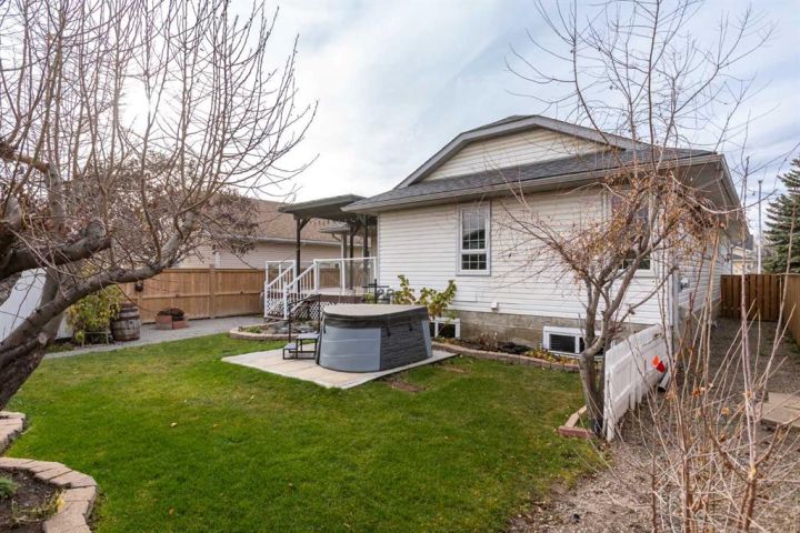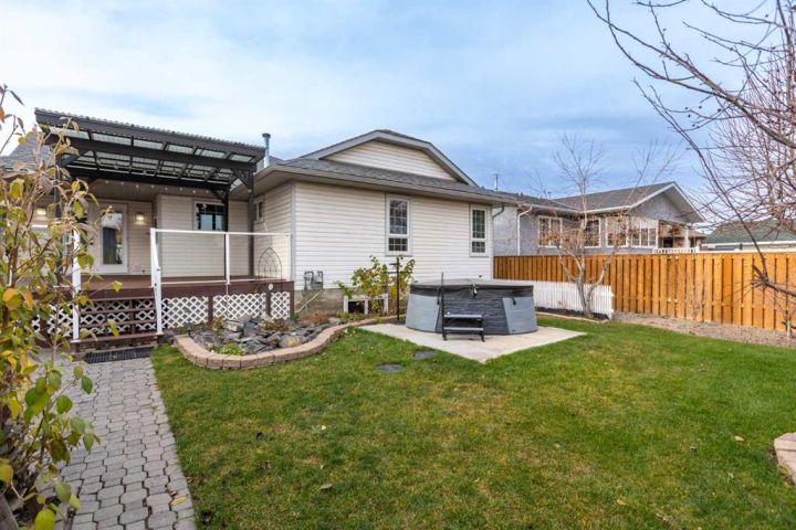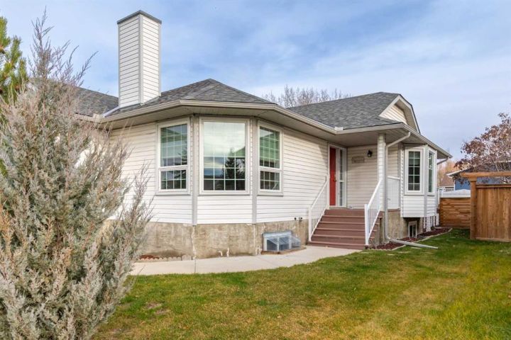 This beautiful and spacious bungalow is within walking distance to Joe Clark School, Highwood High School, Sunshine Lake, Emerson Lake, and the Happy Trails. It has two bedrooms on the main floor and two bedrooms in the fully finished basement, both with walk-in closets. The kitchen, dining room and living room are all open and bright, and the dining room opens onto a covered east facing deck. The kitchen is high quality and has a lot of cabinets, counter space, under cabinet lighting, granite counters and a large island. Flooring in the kitchen, halls, laundry room and bathroom are all heated tile, and the step-down living room has hardwood. On the main floor, the third bedroom has been converted to a laundry room but could easily be converted back into a bedroom. There have been several upgrades to this home over the years including a deluxe walk-in tile shower in the 3-piece cheater ensuite, a beautiful built-in Murphy bed in the downstairs family room that is ideal for company, newer vinyl windows, new roof in 2023, trek decking on the front porch and back porch, beautiful landscaping including a patio with fire pit, newer hot water tank, new furnace in 2024, and new stainless steel appliances in the kitchen. Extras included in this home are a hot tub, shed, and water softener. The fully fenced backyard is private with mature landscaping, a big east facing deck with a gas line for your BBQ, and back alley access. Please click the multimedia tab for an interactive virtual 3D tour and floor plans.