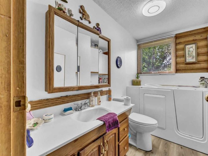 There are very few properties like this one around! Picture yourself living on 30 acres of country paradise, yet only minutes from city limits. Watch the sun come up in the morning and the city lights at night from your front porch. This sought after location is ready for its new owners to start their next chapter. There are 27 acres split into 2 fields WITH FULL IRRIGATION RIGHTS ( big value here ! ) , with a 3 acre yard set between the alfalfa fields. There is a full perimeter fence as well as cross fencing to separate the yard from the fields. The yard features a rustic 2 bedroom, 1 bathroom cedar log cabin home with a loft, a detached double garage, a 32 x 42 workshop with concrete floor and tall doors, a 16 x 30 tack room, and a 22 x 32 barn with corrals. A perfect set-up for your equine friends or critters of any sort. The yard has numerous mature fruit trees ( pear , apple , plum ), and even honey supplied from the bee-keepers! The dugout is sourced from SMRID. This amazing property has so much potential for those that enjoy the quiet and privacy of country living. Build a new home ? Business opportunity ? ( Short Term Rental ? Hobby Farm ? ) . The possibilities here are MANY !