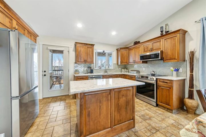 Welcome to your forever home in one of Lloydminster’s most desirable neighbourhoods! Nestled in a quiet close and backing onto a peaceful walking path just steps from Bud Miller Park, this beautiful bungalow is the perfect blend of comfort, space, and family living. Sitting on a massive 10,786 sq. ft. pie-shaped lot, this property offers plenty of room for kids to play, summer barbecues, and evening fires under the stars. You’ll also love the RV parking with oversized gated access—ideal for storing your trailer, boat, or any of your family’s adventure gear safe & out of sight. Step inside to a warm and welcoming open floor plan, featuring rich walnut flooring that ties the main living spaces together. The spacious kitchen includes new stone counter tops, a large island that’s perfect for family breakfasts or baking nights, new appliances and the three-way stone gas fireplace adds a cozy touch that connects the kitchen, dining, and living room beautifully. There are three bedrooms on the main floor, each offering comfort and style. The primary suite is a true retreat, complete with a full ensuite featuring a jetted tub, in-floor heat and a walk-in closet—a quiet space to unwind after a busy day. Downstairs, the walkout basement is bright and welcoming with large windows and newer carpet. It’s the perfect spot for family movie nights or entertaining friends, complete with a bar area and rough-ins for built-in speakers to create your own home theatre. Step outside to enjoy the stone patio and spacious backyard, perfect for playtime or relaxing weekends. You’ll also find a fourth bedroom with a walk-in closet, a full bathroom, and a finished laundry and utility room for added convenience. This home also features a double attached garage, central air conditioning, central vacuum, and all appliances included—everything your family needs for easy living. With its thoughtful layout, unbeatable location, and welcoming atmosphere, this home truly has it all—a place where memories are made and families thrive.