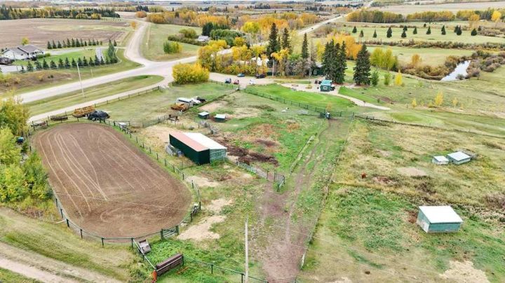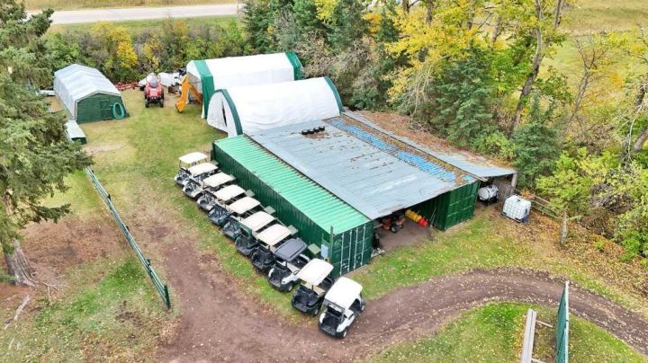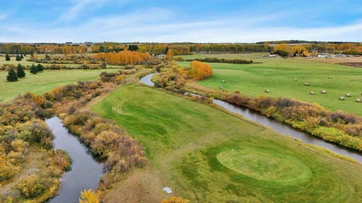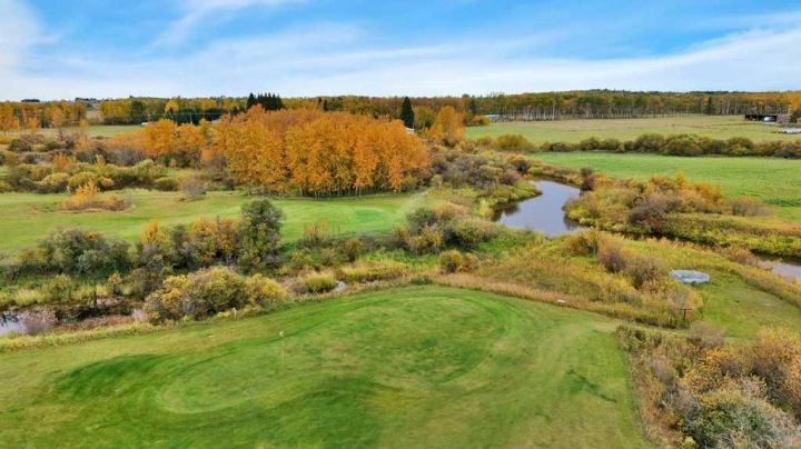 Welcome to the Dark Horse Golf Course! This charming family-owned and operated golf course, located just south of Eckville on Hwy 766, is now available as a turnkey operation. Experience the thrill of teeing off against stunning vistas while navigating challenging holes on this nine-hole, par-36, 2,979-yard course, designed to cater to golfers of all skill levels. It’s the perfect setting for families who love to spend quality time together on the greens. The property features a two-storey home built in 1903 in a beautifully landscaped setting. This home has numerous upgrades including a concrete foundation, siding, shingles, windows, and modern interior decor. There are 4 spacious bedrooms, 1.5 bathrooms, and an office equipped with a murphy bed. It also offers main floor laundry and a double-attached garage. The main floor encompasses 945 sq. ft., with an additional 813 sq. ft. on the second floor. In addition to the home, the property includes essential support structures such as three 10’x12’ buildings for the golf course (counter shed, bathrooms, and storage), two 40-foot sea cans with an 18-foot connecting roof and a 12-foot lean-to. Also, a 20’x30’ tarp-covered shed, a 15’x30’ tarp-covered shed, and an 8’x8’ storage shed. A 12’x24’ greenhouse, a 10’x20’ sauna with a wood-burning stove, and a 40-foot sea can with a 12’x40’ lean-to used for animal shelter and tack room. Additionally, a 55’x180’ outdoor riding arena is included. All necessary equipment to maintain the golf course including a licence to divert and use water from the creek is part of this incredible offering, making it not just a home, but a thriving business opportunity. Surface lease revenue of $8,500 annually. Don’t miss your chance to be your own boss in this enjoyable environment, serving a fun clientele while turning your passion for golf into a rewarding career!