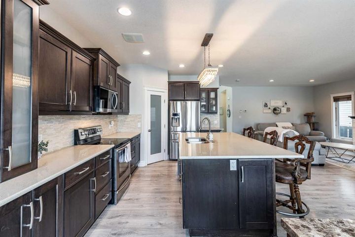 Welcome to 203 Sterling Crescent SE, a beautifully maintained and impressively spacious 5-bedroom home offering 2,203 sq ft above grade in one of Medicine Hat’s most desirable SE neighbourhoods. With its generous layout, bright interior spaces, and an oversized garage, this property is ideal for growing families, hobbyists, or anyone who values extra room inside and out. The main level features a warm, inviting living area filled with natural light, a functional kitchen with ample cabinetry, and a dining space that connects seamlessly to the backyard—perfect for hosting family meals and gatherings. Upstairs, the home offers multiple well-sized bedrooms, including a comfortable primary suite that provides privacy and relaxation. With five total bedrooms, this home offers exceptional versatility—ideal for kids, guests, home offices, or multi-use spaces. The lower level provides even more living space with a cozy family room and additional storage, giving you room to spread out and enjoy. One of the standout features of this property is the oversized 28’ x 28’ double garage—a rare and highly valued upgrade. Whether you need space for vehicles, toys, tools, or a workshop, this garage delivers the convenience and workspace you’ve been looking for. Outside, the landscaped yard offers room to relax, garden, or entertain, while the quiet street and friendly community atmosphere make Sterling Crescent an ideal place to call home. Close to parks, schools, shopping, and Medicine Hat’s great trail system, 203 Sterling Crescent SE combines space, comfort, and location in one exceptional package.