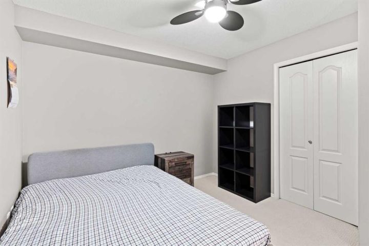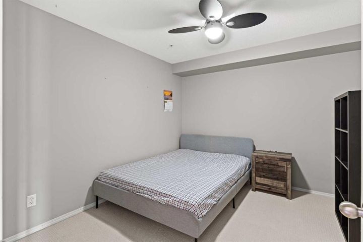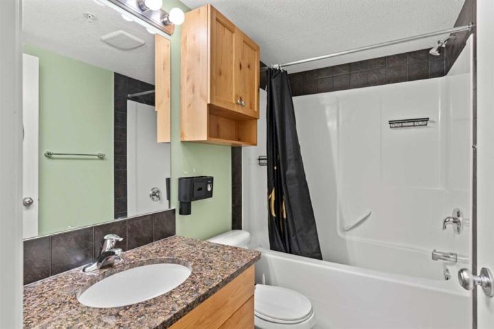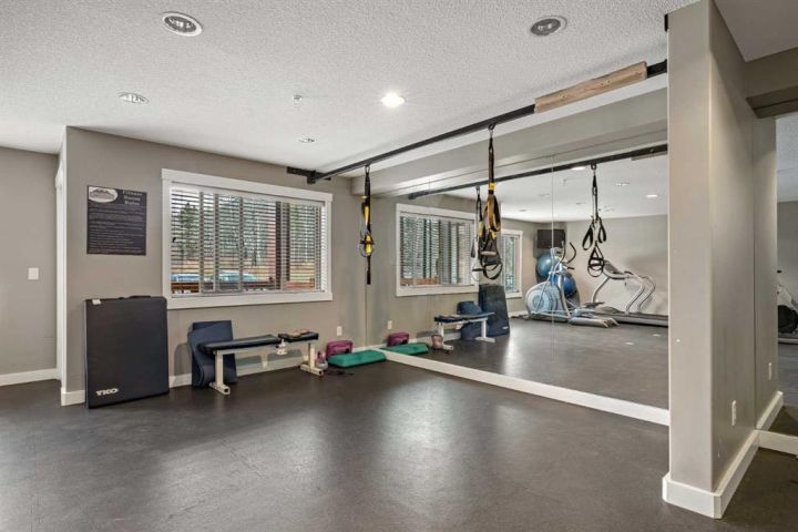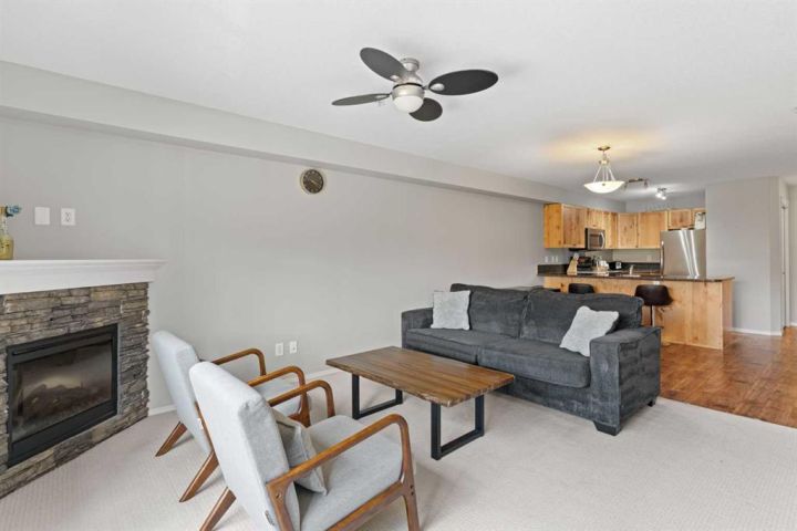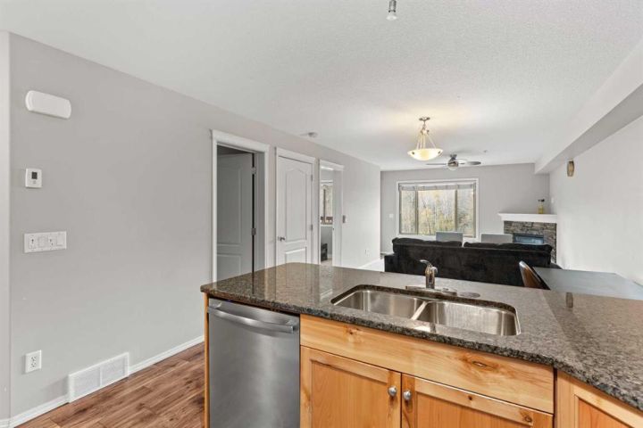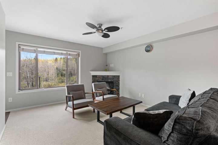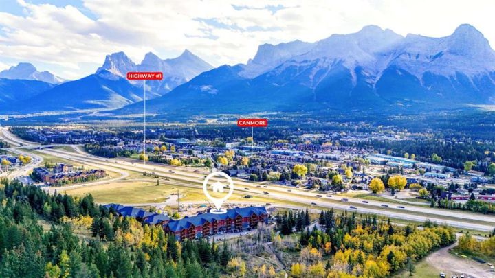 Wake up to uninterrupted mountain panoramas in this bright, refined 1-bedroom + den residence in Canmore. Elevated on the 3rd floor, the home is perfectly positioned to capture all-day natural light and sweeping Rocky Mountain views that frame every room. The gourmet kitchen, finished with granite countertops, seamlessly integrates with the dining and living areas, extending onto a private balcony where the mountains feel impossibly close. The primary bedroom enjoys the same breathtaking outlook, while the spacious den offers an ideal home office, reading room, or additional guest space. Convenience is unmatched with an outdoor parking stall steps from the entrance and an oversized 11' x 7' heated storage locker—one of the largest in the building. The community enhances your lifestyle with a fully equipped fitness centre, children’s playground, dog park, and workshop, along with direct access to scenic trails that define the Canmore experience. Secure underground parking adds an extra layer of comfort, and residents enjoy exceptional amenities including a modern fitness facility, ski and snowboard tuning room, carpentry room, and a welcoming common lounge perfect for gatherings and celebrations. This is more than a home—it’s a luxury vantage point to the Rockies and a gateway to the Canmore lifestyle.