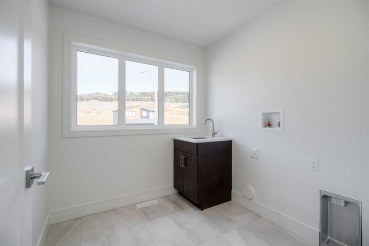 Welcome to the Oak model by Stranville Living Master Builder! Located in the Coleman, Alberta community of Aurora, this home is perfect for a wide range of buyers, including empty-nesters, vacation home buyers, and growing families. Nestled on the northern edge of Coleman, the community of Aurora boasts breath-taking southern views of the Rocky Mountains, including among others, Chinook Peak and Turtle Mountain. The orientation of this 2,175 square foot home, which backs directly south, provides a stunning 180 degree panoramic view of the southern mountain range from the living room, dining room, and the primary bedroom and ensuite. This tremendous home is outfitted with Stranville Living's top-tier appliance package, including a seamlessly integrated Fisher & Paykel fridge, paneled dishwasher, built-in wall oven and microwave, and a range hood wrapped to match the cabinetry. Tired of the stark sterilized look for your kitchen? Soak in the maple finish of this kitchen with gold accents and beautiful tiled backsplash. Moving upstairs, you'll find the massive bonus room of over 280 square feet, ideal as a second level living room or play space for the young ones. The primary bedroom is a stunner! In it, you'll find a huge walk-in closet that provides a ton of storage and an exquisite ensuite bathroom that has a large tiled shower, stand alone tub, and 10' of double sink vanity. Each of the two other bedrooms on the second level have their own walk-in closets and the second floor laundry room has a sink with cabinet and countertop. The exterior of the home is finished in James Hardie fiber cement siding with tasteful accents and a rear deck accessible off the dining room. There are not many lots in Coleman that can boast this view, so come see what could be yours. High-efficient mechanical equipment, Low E windows, and spray foam in the rim joists help keep your heating and cooling costs in check. Must be seen to be appreciated! Photos may contain virtual staging.