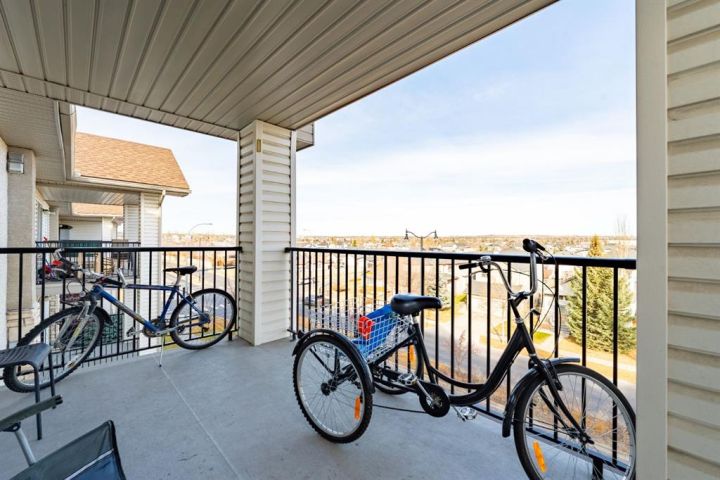 Condo fees that include EVERYTHING—heat, water, electricity, —plus brand new appliances (including washer, dryer, and all kitchen appliances) and fresh premium paint done just 6 months ago… all at a price that is simply unbeatable! Welcome to this beautifully maintained 2-bedroom, 846 sq. ft. top-floor suite—a perfect choice for first-time buyers, down sizers, or investors. Located in the highly desirable community of Cimarron Common, you’re just steps away from shops, restaurants, health and wellness services, parks, and pathways. Truly, you won’t even need a car. Inside, you’re greeted by a bright and spacious living room featuring a cozy corner gas fireplace and sliding patio doors leading to a large private deck—perfect for BBQs, morning coffee, or entertaining. The open-concept kitchen flows seamlessly into the living and dining areas and includes a convenient breakfast bar for casual seating and hosting. The primary bedroom offers a walk-through closet that connects to its own private 4-piece ensuite. The second bedroom and an additional 4-piece bathroom are ideally positioned near the entrance, providing great privacy for guests or family members. Enjoy the convenience of in-suite laundry and extra storage, making day-to-day living incredibly practical. Cimarron Common is known for its welcoming community feel, unbeatable walkability, and low-maintenance lifestyle. With all utilities included and major upgrades already taken care of, this home offers exceptional value in a vibrant location—at a price that’s hard to beat.