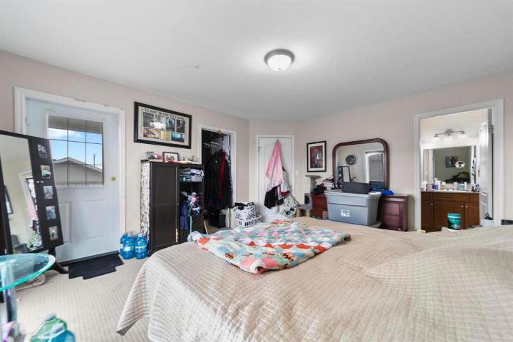 Discover this impressive two-storey home in the desirable community of Valleyview! The main floor offers a warm and inviting living room with a cozy gas fireplace, along with a bright, open kitchen and dining area featuring tons of cabinet space, a corner pantry, and a functional island. A convenient main-floor laundry room and 2-piece bath complete the level. Upstairs, you’ll find a spacious bonus room, three comfortable bedrooms, and two bathrooms, including a primary suite with a walk-in closet, en-suite, and its own private balcony—perfect for morning coffee. The basement is partially finished, giving you room to expand. You will enjoy the A/C during the summer months! Outside, enjoy a fully fenced and private yard with low-maintenance vinyl fencing, stamped concrete, and a lovely deck for entertaining. An attached heated double garage and additional RV parking make this home an exceptional find.