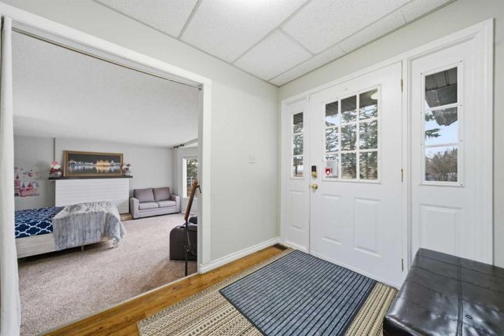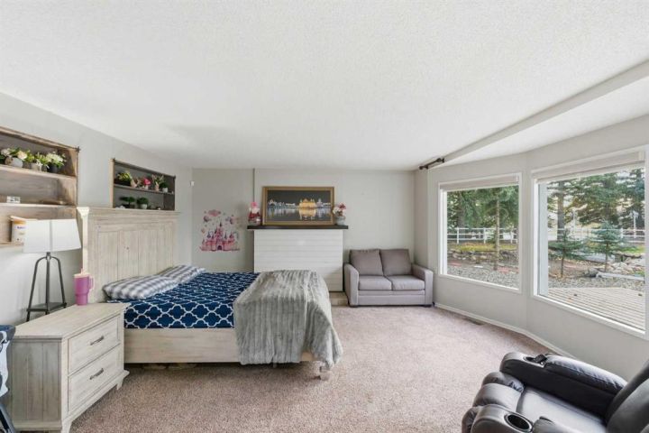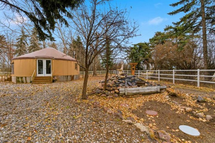 A Private Country Oasis on 5.52 Acres | Steps to Town | 2,231 Sq. Ft. Above Grade | Over 3,000 Sq. Ft. of Total Developed Living Space Discover this exceptional acreage property offering privacy, natural beauty, and timeless country charm — all just minutes from town amenities. Nestled on 5.52 fully treed acres behind a private gated entrance, this uniquely designed residence provides a serene lifestyle while maintaining convenient access to daily necessities and major roadways. The home features thoughtfully selected farmhouse-inspired finishes, including reclaimed elements sourced from historic sites. The well-appointed kitchen includes stainless steel appliances, ample counter space, and extensive cabinetry, providing both functionality and style. The adjoining dining room offers a warm and inviting space for family gatherings and special occasions. A dramatic, light-filled family room showcases vaulted ceilings and expansive windows framing the peaceful natural surroundings. The sunken living room adds an additional cozy retreat, complete with a wood-burning fireplace and bay window — ideal for relaxing on cooler evenings. The upper level hosts a charming primary bedroom with double barn-door closet access, a gas fireplace, and a private balcony overlooking the treed landscape — the perfect spot for morning coffee or quiet reflection. A second bedroom, flex room, and spacious 5-piece bathroom complete this level. The finished lower level offers a large multi-purpose space, an additional bedroom with 2-piece bathroom (macerating toilet), and direct walk-up access to the outdoors.The fully developed lower level offers exceptional additional living space, featuring a bedroom, a 2-piece bathroom (macerating toilet), a large recreation room, storage area, and direct walk-up access to the outdoors, making it ideal for guests, teens, or multi-use living. Outdoor Features The property offers endless opportunities to explore and enjoy nature with mature trees, walking paths, and multiple outdoor activity and relaxation areas. Additional amenities include: • Cottage-style playhouse • Swings and outhouse • Chicken coop and horse shelters • Wood sheds and detached garage • Two firepit areas and water features • Expansive deck space • Pasture and stock waterers — ideal for horse owners Recent Upgrades • Gas stove • Window blinds • Water filtration system • New hot water tank • New furnace Location & Investment Appeal Conveniently located near Honda Okotoks, this property offers excellent access to shopping, services, and commuter routes. A fantastic opportunity for buyers seeking space, lifestyle, and long-term land value in the Okotoks and surrounding area. This one-of-a-kind property combines character, comfort, and possibility — a rare offering that truly must be experienced.
