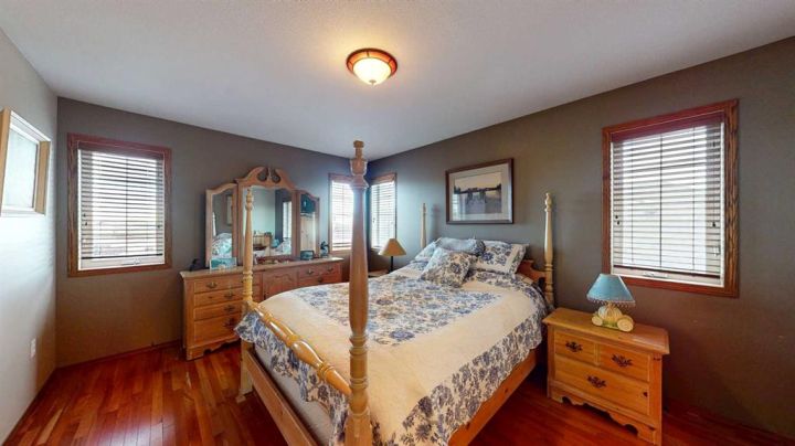 Beautiful Lacey-built home offering over 2,000 sq. ft. of well-maintained living space. The main floor features a spacious dining room, bright kitchen with granite countertops, and access to a partially covered deck. The living room includes a wood-burning stove and plenty of space for entertaining. A convenient main-floor laundry room and 2-piece bathroom complete this level. The upper floor offers a large primary bedroom with a 5-piece ensuite featuring a double vanity, separate shower, and jetted corner tub. Two additional generous bedrooms and a 4-piece bathroom are also located upstairs. The fully developed basement includes an additional bedroom, 3-piece bathroom, and a large family room with a second wood-burning stove. Excellent storage throughout the home. A 33' x 40' garage provides ample parking and storage options. Large windows throughout allow for abundant natural light. Located on a quiet area with great neighbours, this property offers privacy and a peaceful, retreat-like setting. Southeast-facing kitchen provides morning sun and passive solar benefits and morning over the country. Close to the city but miles from the hustle.