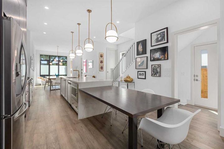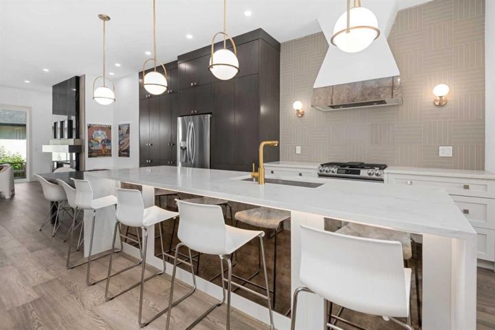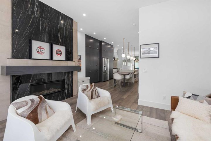 OPEN HOUSE SUNDAY NOVEMBER 16 2-4. Welcome to sophisticated living in the heart of North Glenmore Park. This newly built custom residence, created in collaboration with the renowned House of Bishop, combines classic architectural charm with contemporary luxury. Perfectly positioned on a quiet street bordering Altadore, this single-family home offers striking curb appeal and over 2,700 sq. ft. of thoughtfully designed living space. Inside, an open-concept layout is enhanced by 10-foot ceilings, designer light fixtures, wide plank hardwood floors, and a stunning gas fireplace with blower. The gourmet kitchen is a true centerpiece, showcasing custom cabinetry, quartz counters, an eye-catching beveled backsplash, under-cabinet LED lighting, floor-to-ceiling oak built-ins, and premium stainless steel appliances—including a 5-burner gas cooktop and custom hood fan. Upstairs, the primary suite serves as a private retreat with vaulted ceilings, a walk-in California Closet, and a luxurious 5-piece ensuite with a freestanding tub, built-in bench, and steam shower rough-in. Two additional bedrooms, a 4-piece bath, a laundry room, and linen storage complete the upper floor. The fully finished lower level—accessed via a private side entrance—provides exceptional versatility for a future legal or illegal suite (subject to city approval). This space includes two generously sized bedrooms, a full bathroom, laundry rough-ins, a wet bar or kitchenette option, and hydronic in-floor heating rough-ins. Stylish vinyl plank flooring and a sleek basement bar add modern appeal. Additional features include rough-ins for a central vacuum system, complete exterior landscaping with fencing, softscaping, and concrete walkways. A spacious rear deck offers the perfect setting for gatherings, while the private backyard is ideal for quiet relaxation. Located just minutes from downtown, public transit, Marda Loop, and some of Calgary’s top schools, this home delivers a rare combination of high-end finishes, exceptional craftsmanship, and an unbeatable location. Don’t miss the opportunity to make this North Glenmore Park masterpiece your own.