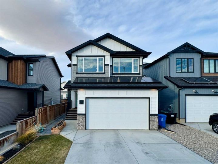 Welcome to 127 Goldenrod Road West, The Addison, a refined 2022 Stranville Living residence that blends modern sophistication with thoughtfully curated upgrades, offering a living experience that feels both elevated and effortless from the moment you arrive. The main floor impresses with its bright, open design, enhanced by upgraded designer lighting and a kitchen crafted for those who appreciate quality. Here, premium appliances including an induction cooktop, built-in oven and microwave, Fisher & Paykel refrigerator, and Blomberg dishwasher are paired with elegant finishes, upgraded fixtures, and a meticulously organized pantry with automatic lighting. Added custom shelving throughout the home elevates both form and function. Practical luxury continues with an organized mudroom, a pristine epoxy-coated garage floor, RV 20-amp outlet, and integrated smart home lighting and thermostat systems every detail curated to enhance convenience and comfort. Upstairs, three serene bedrooms await, with the primary suite offering a peaceful retreat complete with a walk-in closet. A 5-piece bathroom and upstairs laundry with stacked washer/dryer provide everyday indulgence and ease. The fully finished basement extends the home’s versatility with elevated style: soundproofing, matching cabinetry and quartz, its own laundry, an impressive oversized wet bar, and generous living space ideal for hosting, relaxing, or future suite potential. Sophisticated extras including custom office shelving, mounted TVs, upgraded underlay, designer window coverings, and a dedicated coffee bar shelf add to the home’s elevated feel. Outdoors, the landscaped yard becomes a private haven. Relax beneath the pergola on the concrete patio, and appreciate features such as underground sprinklers, a retractable screen door, LED solar fence lights, and a beautifully designed BBQ shed with insulation and solar lighting. Gas lines run to both the yard and garage for seamless entertaining. Security and convenience continue with four exterior cameras and a doorbell camera. Sustainability meets luxury with a powerful 6,800-watt solar system and permanent architectural exterior LED lighting, providing long-term efficiency without compromising style. With premium appliances on both levels included, this exceptional property is truly move-in ready, a rare blend of comfort, craftsmanship, and elevated living in every detail. For a closer look, please view the video walkthrough in the links tab or on YouTube by searching the home address.