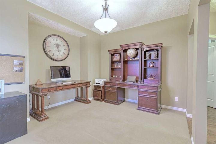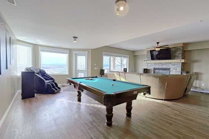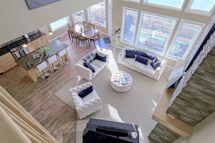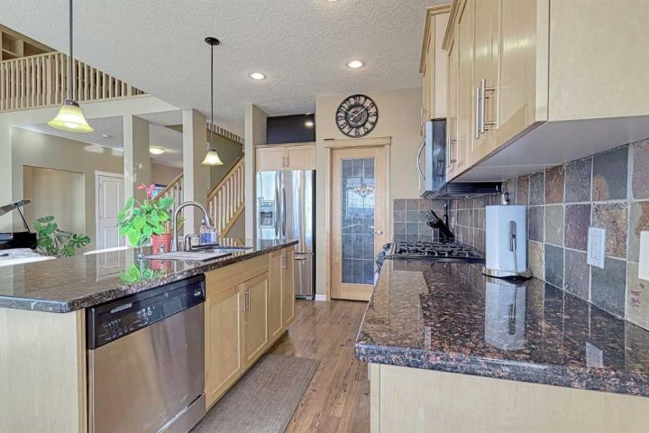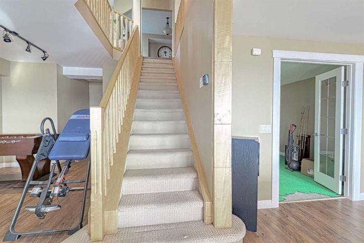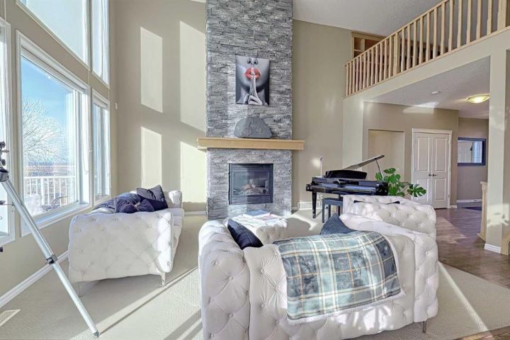 Welcome to 114 Gleneagles Estates Lane — A Rare Opportunity in One of Cochrane’s Most Sought-After Locations Discover luxury living with unmatched views overlooking the prestigious Gleneagles Golf Course, the Town of Cochrane, and the breathtaking Rocky Mountains. Homes with this level of scenery rarely come available at this price point. Main Floor – Grand, Open, and Designed for Comfort Step inside to a grand entrance that flows into an impressive open-concept main floor with soaring 21-foot ceilings and an abundance of natural light from oversize windows framing those incredible views. The chef’s kitchen is both beautiful and functional, featuring: Maple cabinetry Granite countertops Stone backsplash Large pantry Ample storage and counter space Bright breakfast nook with panoramic mountain views The spacious living room centers around a cozy gas fireplace, perfect for relaxing or entertaining. Your primary bedroom suite is conveniently located on the main level and offers: A large walk-in closet Walk-in glass shower Deep soaker tub Dual sinks Heated stone floors Private walk-in closet A formal dining room (or office), plus a well-appointed mud room with laundry and sink connecting directly to the garage, complete the main floor. Upper Level – Loft With Spectacular Views The open-to-below loft provides additional living space and some of the best views in the entire home—a perfect spot for an office, reading area, or hobby room. Walkout Basement – Bright, Spacious, and Perfect for Family Living The fully developed walkout level features: Two additional bedrooms Full bathroom Large family/games room with fireplace Dedicated exercise room Direct walkout access to the backyard and stunning scenery This level is ideal for teenagers, guests, or extended family, offering both space and privacy. Thank you.