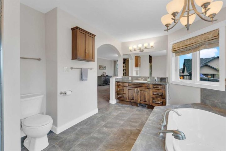 This stunning home is located in the highly sought-after neighborhood of Elizabeth Park. From its exceptional curb appeal to its beautiful interior finishes; this home shines at every turn. From the moment you step into the large open foyer you will be captivated. The main level includes a Chef inspired kitchen that is truly a standout feature, offering a walk-through butler's pantry with direct access to the attached garage - an incredible convenience you'll quickly wonder how you ever lived without. The open-concept main floor has tons of windows allowing the space to be filled with natural light and provides an ideal layout for entertaining with seamless flow from the kitchen and living spaces to the terrific backyard. Upstairs you will find a luxurious primary suite with stunning ensuite - including an indulgent soaker-tub, walk-in closet and your very own private balcony. Three additional bedrooms and a full bathroom complete the upper level making it perfect for a growing family. The fully finished basement offers a great spot for the family to gather for movie night, or create a fun recreational / games room for everyone to enjoy. One additional massive bedroom and a full bath make this space ready for teens and guests. This home is classic and custom including Central air conditioning, a covered deck, hardwood flooring, in-floor heat in kitchen, garage and basement. It is truly move-in ready with room for the entire family and situated in the desirable neighborhood of Elizabeth Park - close to walking trails, schools and greenspaces.
