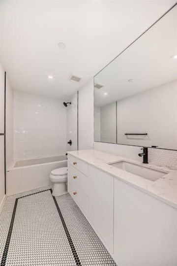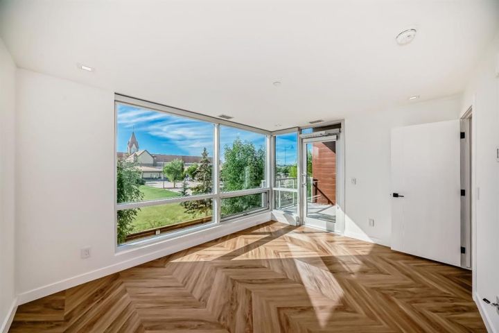 Welcome to Gateway by TRUMAN, set in the vibrant and master-planned community of West District. This concrete-constructed, 2-level brownstone offers an unparalleled blend of modern elegance and convenience, featuring 2 bedrooms, 2.5 bathrooms, a versatile study, and the added bonus of 2 titled underground parking stalls. Step inside and experience the finest craftsmanship with luxurious details at every turn. Enjoy year-round comfort with air conditioning, while Chevron wide-plank luxury flooring graces the home, lending an air of sophistication throughout. Custom penny round mosaic tiles elevate each bathroom, creating spa-like retreats. The ambiance is further enhanced by the painted ceilings, adding a refined touch to every space. The chef-inspired kitchen is truly the heart of the home, designed to impress. With a super matte finish and striking brushed gold hardware, the kitchen boasts a seamless blend of style and function. High-end appliances include a gas cooktop and wall oven, a spacious 36" Fisher & Paykel integrated fridge, and a paneled dishwasher. Soft-close custom cabinetry, under-cabinet lighting, eating bar, and quartz countertops with a matching backsplash complete this elegant and efficient culinary space. The thoughtfully designed floor plan ensures both comfort and practicality, with floor-to-ceiling windows that fill the home with natural light. These large windows are outfitted with window coverings and open to a private patio, while the primary suite features its own balcony—perfect for enjoying serene morning coffees or evening sunsets. Convenience is paramount with a washer and dryer included. Set in an exclusive community, Gateway offers the perfect blend of luxury, location, and lifestyle. Stay tuned for the upcoming photo gallery that will capture the beauty of this residence.